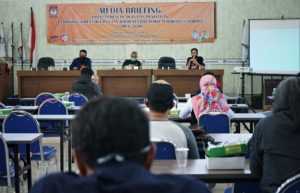 Surabaya, jatim.kpu.go.id- Berkesempatan hadir mengisi Media Breafing bersama para jurnalis di KPU Kota Surabaya (25/7), Ketua Komisi Pemilihan Umum Republik Indonesia (KPU RI), Arief Budiman mengharapkan tiga (3) stakeholder yakni, pemilih, penyelenggara dan peserta Pemilihan Serentak 2020 mematuhi protokol kesehatan didalam setiap tahapan pemilihan yang melibatkan ketiganya. Hal ini dimaksudkan untuk menyukseskan Pemilihan Serentak Lanjutan Tahun 2020 dan membuat fondasi yang kuat untuk pemilihan di masa yang akan datang.