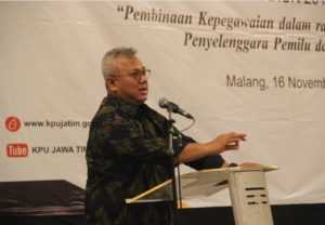 Malang, jatim.kpu.go.id- Berkesempatan membuka Rapat Koordinasi (Rakor) Pembinaan Aparatur Sipil Negara (ASN) Gelombang III Komisi Pemilihan Umum Provinsi Jawa Timur (KPU Jatim) dan KPU Kabupaten/ Kota di Jawa Timur, Ketua KPU Republik Indonesia, Arief Budiman berpesan untuk selalu menjaga kekompakan. Rakor Pembinaan ASN gelombang III ini dilaksanakan di hotel Harris Malang, Sabtu (16/11).