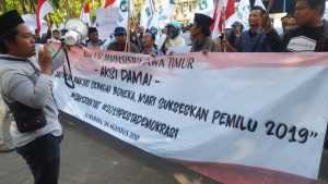 “Kami berharap KPU Jatim juga hadir dan pro-aktif, terutama terkait kampanye yang menjurus pada kegaduhan yang berpotensi mengancam perpecehan di masyarakat Jatim,” ujar Koordinator Aliansi Mahasiswa Jawa Timur, Muhammad Ade.