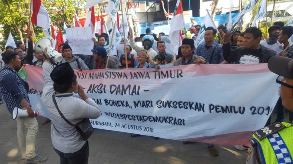 DATANGI KANTOR KPU JATIM, MAHASISWA BERHARAP PEMILU DI JATIM 2019 AMAN DAN DAMAI