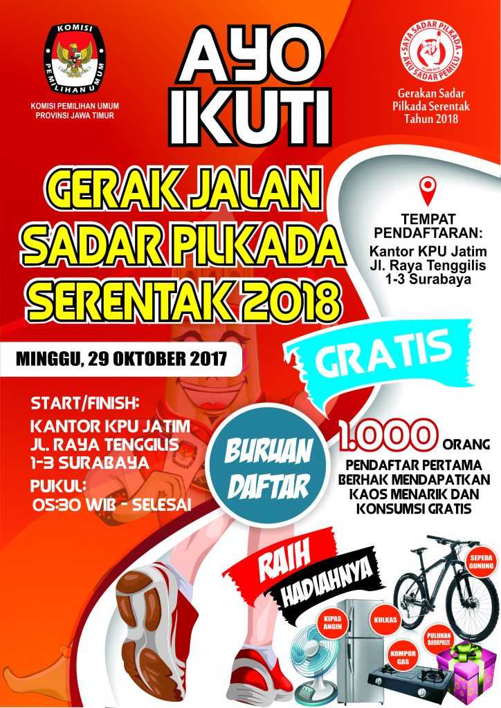 GERAK JALAN SADAR PILKADA SERENTAK 2018, KPU JATIM TARGET 2 RIBU PESERTA
