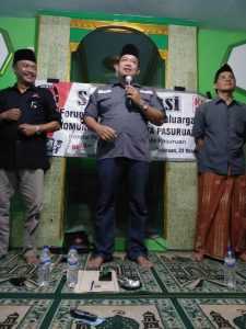 Kota Pasuruan, jatim.kpu.go.id- Wujudkan komitmen dalam peningkatan partisipasi pemilih Pemilu 2019, Komisi Pemilihan Umum Jawa Timur (KPU Jatim) terus melakukan sosialisasi. Kali ini sosialisasi dilakukan di forum warga berbasis keluarga, di Kota Pasuruan, Selasa (23/10). Sosialisasi dilakukan bersama puluhan komunitas santri, di Musholla Darussalam Al-Hasyimy Jalan Pati Unus, Kelurahan Krampyangan, Kecamatan Bugul Kidul Kota Pasuruan.