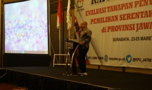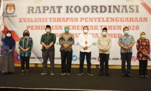 Surabaya, jatim.kpu.go.id- Penyelenggaraan Pemilihan Serentak Tahun 2020 menjadi modal penyelenggaraan Pemilu dan Pemilihan Serentak Tahun 2024 nanti. Ungkap Plt. Ketua KPU Republik Indonesia, Ilham Saputra dalam arahannya pada Rapat Koordinasi Evaluasi Tahapan Penyelenggaraan Pemilihan Serentak Tahun 2020 di Provinsi Jawa Timur hari ini (Kamis, 25/3).