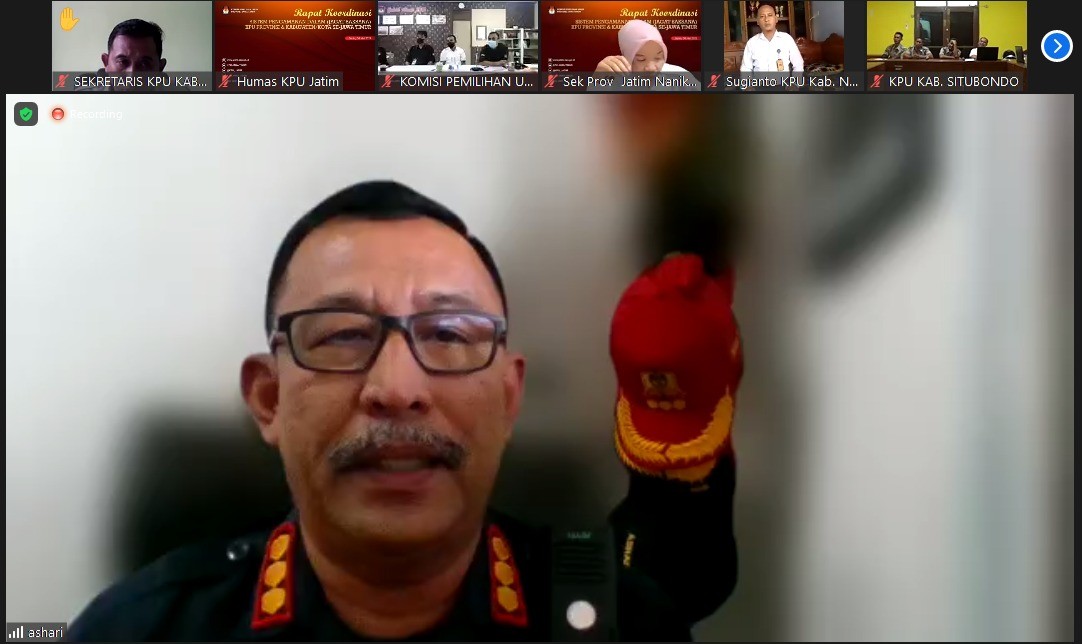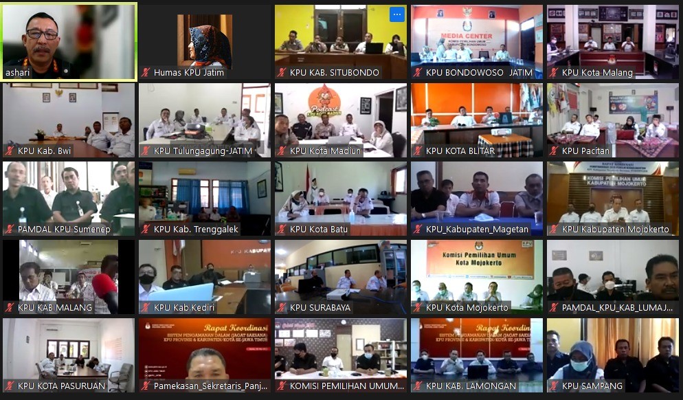 Surabaya, jatim.kpu.go.id- Sebagaimana artinya, penjaga atau pemimpin dunia, Jagat Saksana memiliki tanggung jawab besar dan mulia bagi lembaga KPU. Keberadaannya diharapkan menjadi garda terdepan dalam menciptakan keamanan, ketertiban, kenyamanan, terlebih ke depan akan segera dimulainya serangkaian tahapan Pemilu 2024. Demikian ungkap Sekretaris KPU Jatim, Nanik Karsini pada Rapat Koordinasi Pengamanan Dalam (Jagat Saksana) KPU Provinsi dan 38 KPU Kabupaten/ Kota se-Jawa Timur, hari ini Senin (30/5) secara virtual.