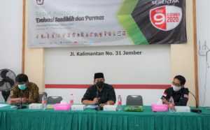 Jember, jatim.kpu.go.id- Menjelang hari pemungutan suara tanggal 9 Desember nanti, Komisi Pemilihan Umum Provinsi Jawa Timur (KPU Jatim) bersama dengan 19 KPU Kabupaten/ Kota Penyelenggara Pemilihan menyusun strategi untuk memaksimalkan partisipasi masyarakat dalam Rakor Evaluasi Sosialisasi, Pendidikan Pemilih dan Partisipasi Masyarakat (Sosdiklih dan Parmas).