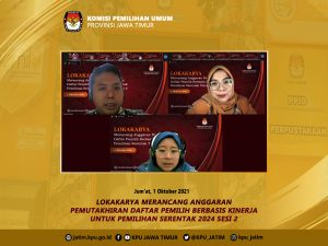 Nurul berpandangan dengan membahas hal yang sama secara berseri harapannya bisa mengkaji lebih dalam dan memberikan hasil yang nyata pada kegiatan KPU selanjutnya. “Sehingga besar harapan Kami dengan dilaksanakannya kegiatan ini Kita bisa saling melengkapi. Penyaji satu berbicara teori dan yang satunya membicarakan implementasinya seperti apa. Dengan demikian ini bisa menjadi bekal dalam rangka penyusunan anggaran pemutakhiran daftar pemilih berbasis kinerja,” jelas Komisioner KPU Jatim ini (1/10/2021).