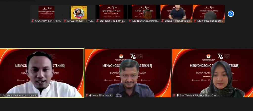 Surabaya, jatim.kpu.go.id- Rekapitulasi Penghitungan Suara menjadi tema dalam bahasan Kelas Teknis Menyongsong 2024 ke-6 (Kamis, 5/8). Tema ini selanjutnya oleh KPU Jatim dan penyelenggara di Jawa Timur dibedah dari dua sudut pandang, yakni pertama, Perjalanan Rekapitulasi Hasil Penghitungan Perolehan Suara Pemilihan 2020 dan Liku-liku dimasa Pandemi. Serta kedua, Proses Rekapitulasi Hasil Penghitungan Perolehan Suara Tingkat Kabupaten/ Kota.