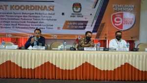 Rapat Koordinasi Persiapan Penyerahan Syarat Dukungan Perbaikan Bakal Pasangan Calon Perseorangan dan Persiapan Tahapan Pencalonan Serta Sosialisasi Pedoman Teknis Pendaftaran Pemantau, Lembaga Survey/ Jajak Pendapat dan Penghitungan Cepat Hasil Pemilihan Serentak Lanjutan Tahun 2020 Bersama 19 Kabupaten/ Kota di Jawa Timur ini selesai sekitar jam 12 siang.