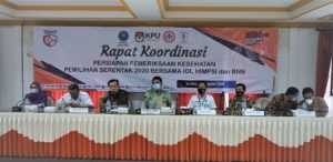 KOORDINASI PERSIAPAN PEMERIKSAAN KESEHATAN PADA PEMILIHAN 2020, 19 KPU KABUPATEN/ KOTA BERTEMU IDI; HIMPSI & BNNP