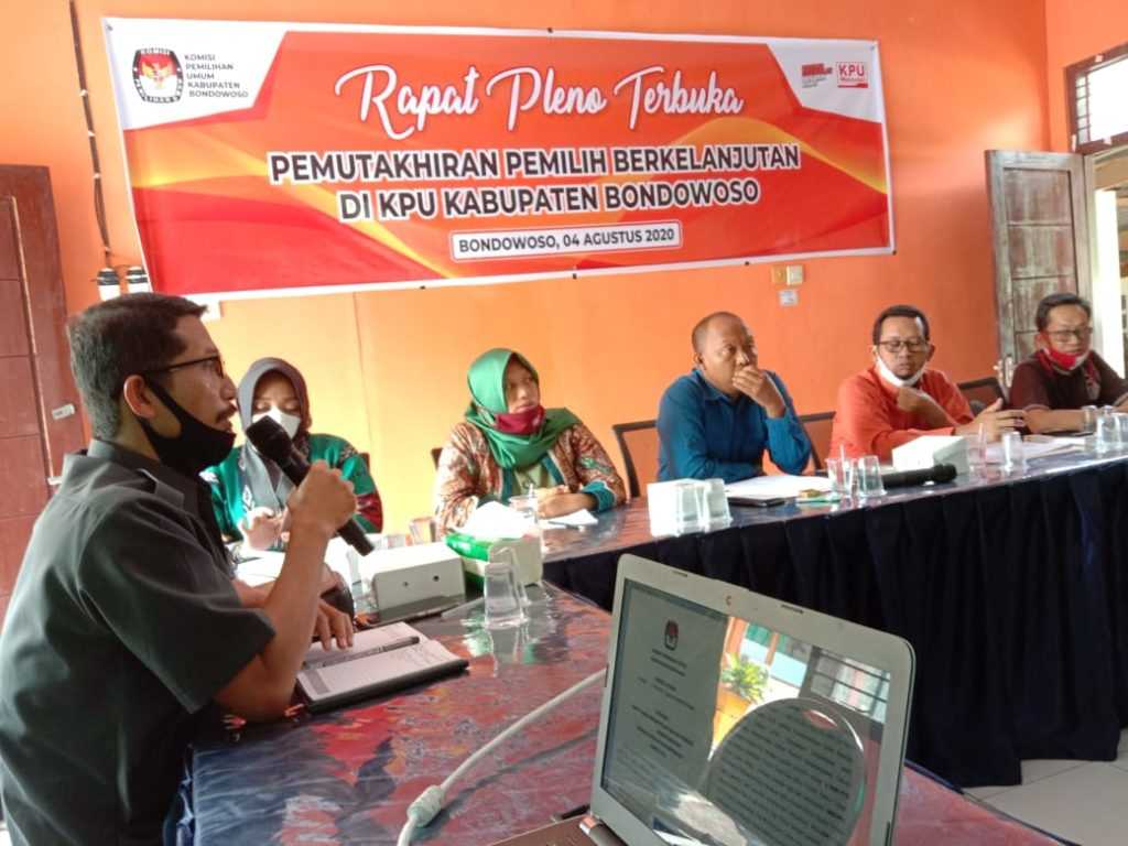 Bondowoso, jatim.kpu.go.id- Komisi Pemilihan Umum (KPU) Kabupaten Bondowoso menggelar Rapat Pleno Pemutakhiran Data Pemilih Berkelanjutan Periode Juli 2020 (Selasa, 4/8). Pemutakhiran Data Pemilih terus dilakukan untuk memastikan keakuratan jumlah pemilih pada saat pelaksanaan Pemilihan.