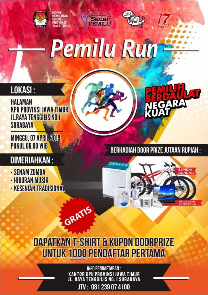 Surabaya, jatim.kpu.go.id- Jelang pelaksanaan agenda nasional Pemilu Run tanggal 7 April 2019 nanti, Komisi Pemilihan Umum Jawa Timur (KPU Jatim) membuka pendaftaran Pemilu Run bagi masyarakat umum. Pendaftaran ini dibuka untuk 2000 orang peserta.
