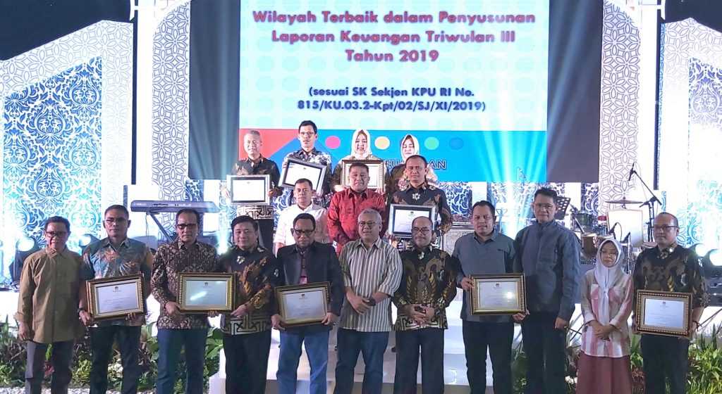 Yogyakarta, jatim.kpu.go.id- Usai mendapatkan penghargaan realisasi anggaran tertinggi pada pertengahan tahun ini, kali ini Komisi Pemilihan Umum Jawa Timur (KPU Jatim) kembali mendapatkan penghargaan Satuan Kerja Terbaik dalam Penyusunan Laporan Keuangan Triwulan III Tahun 2019 (kategori wilayah satuan kerja besar). Penghargaan diberikan oleh KPU RI kepada KPU Jatim pada moment Rapat Pimpinan Rencana Srategis KPU Tahun 2020-2024 (Rabu, 27/11).