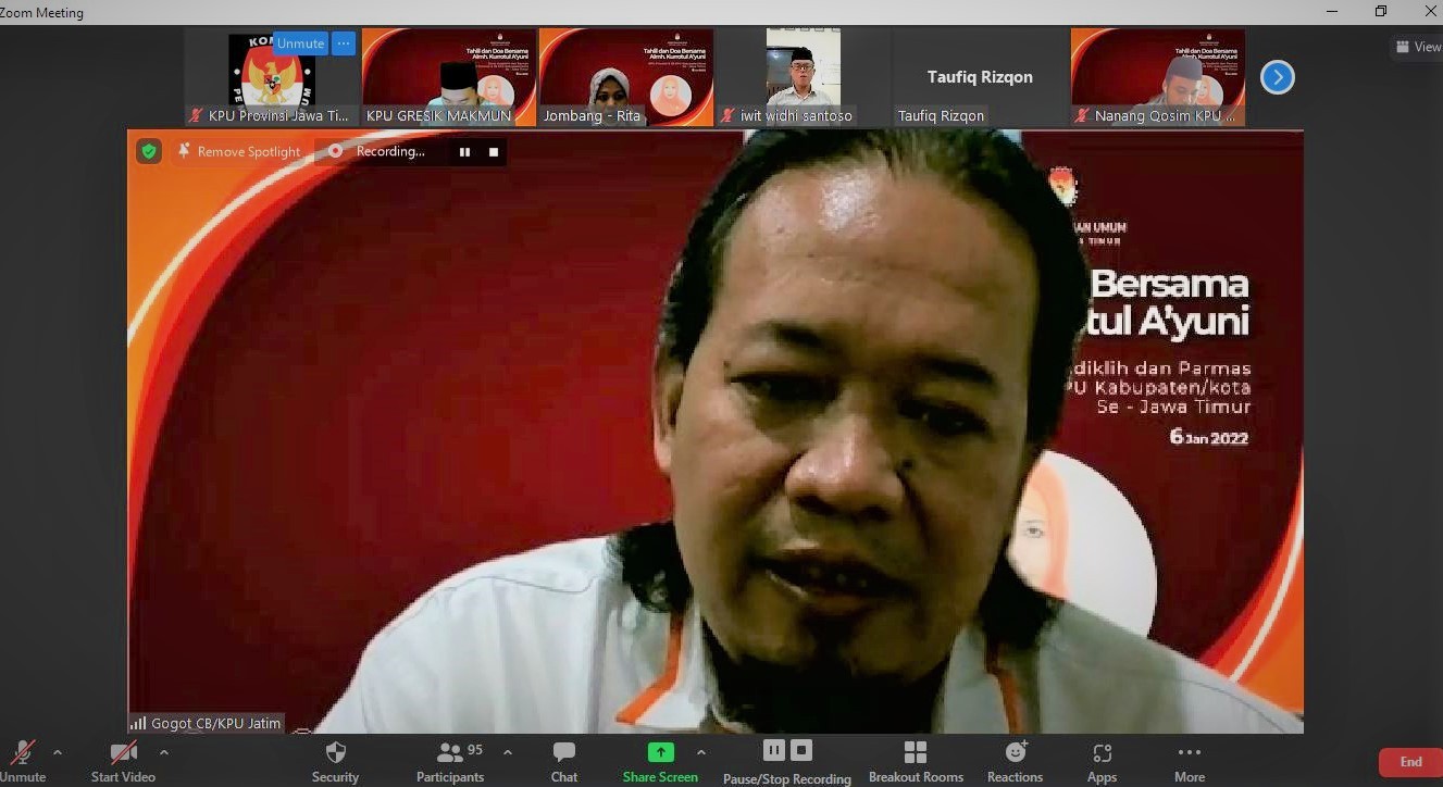 Divisi Sosdiklih dan Parmas KPU Jatim, Gogot Cahyo Baskoro saat membuka acara menyampaikan bahwa kepergian Almarhumah menorehkan duka dan kesedihan mendalam bagi KPU Jatim, khususnya Divisi Sosdiklih dan Parmas.