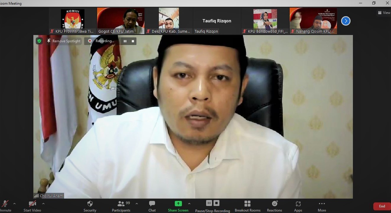 Tahlil dan doa bersama digelar pada hari ini Kamis, (6/1) secara virtual dengan dihadiri oleh Ketua dan Anggota KPU Jatim, Ketua dan Anggota KPU Kabupaten/ Kota se Jatim, serta suami dari Almarhumah sebagai perwakilan dari keluarga.