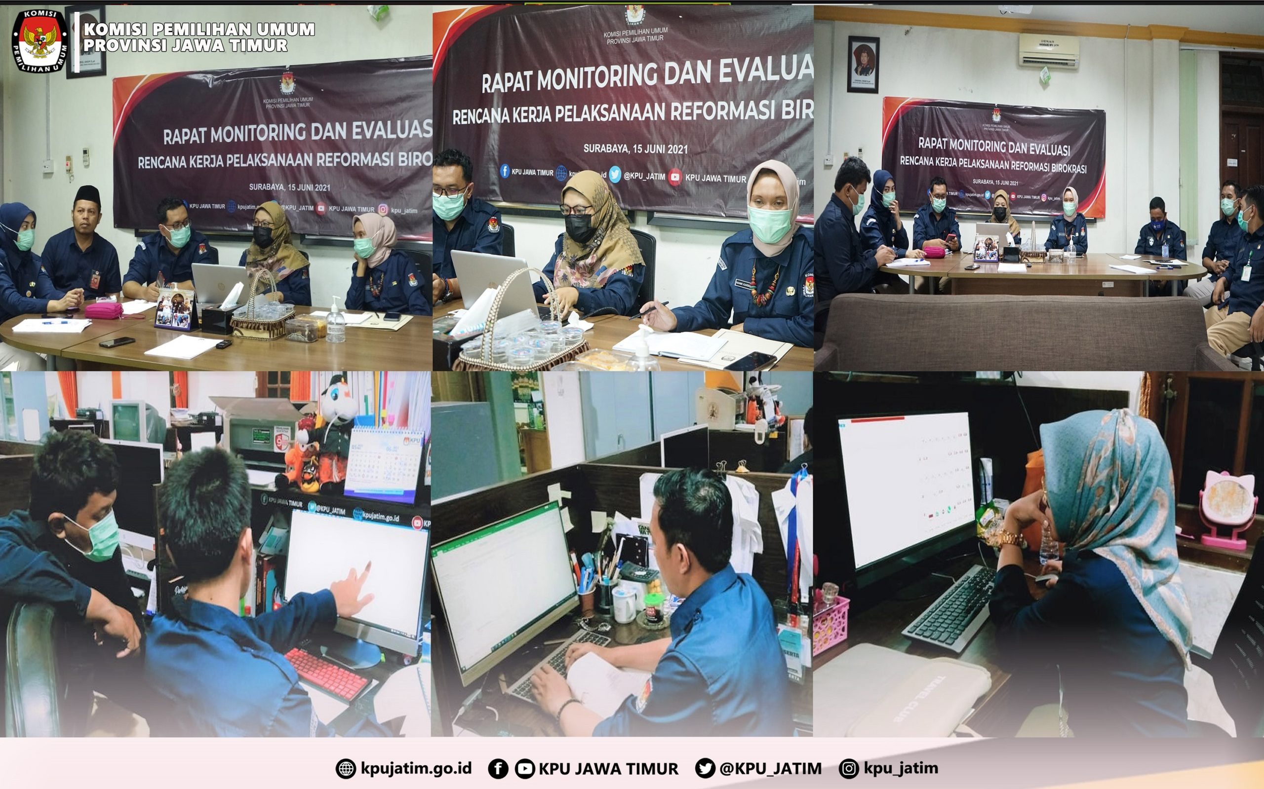 Surabaya, jatim.kpu.go.id- Seluruh jajaran Komisi Pemilihan Umum Provinsi Jawa Timur (KPU Jatim) dengan kompak terus memaksimalkan persiapan Penilaian Mandiri Pelaksanaan Reformasi Birokrasi (PMPRB) di satuan kerjanya. Sampai dengan hari ini (Selasa, 15/6), Rapat Monitoring dan Evaluasi Rencana Kerja Pelaksanaan Reformasi Birokrasi, penyusunan Rencana Aksi, serta pemenuhan bukti dukung penilaian masih terus dilakukan.