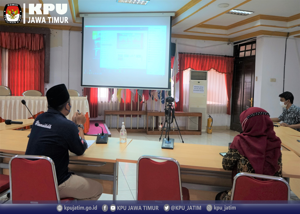 Surabaya, jatim.kpu.go.id- Hari ini, Selasa, tanggal 4 Mei 2021, Komisi Pemilihan Umum Provinsi Jawa Timur (KPU Jatim) memberikan sosialisasi terkait Pemutakhiran Data Pemilih Berkelanjutan (PDPB) kepada seluruh stakeholder terkait. Sosialisasi dilaksanakan secara daring, berlangsung dari pukul 13.00 – 14.30 WIB.