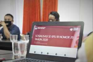 Hadir mengikuti sosialisasi ini yakni, Divisi Sosdiklih; Parmas dan SDM dari 19 KPU Kabupaten/ Kota.