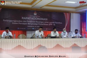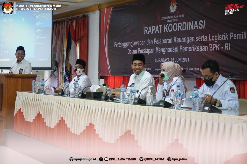 “Ada beberapa kabupaten/ kota yang masuk sampling pemeriksaan BPK. Bapak/ Ibu harus bisa menyajikan laporan keuangan sebaik mungkin. Data yang diminta BPK, dipenuhi semua,” jelas Ketua KPU Jatim.