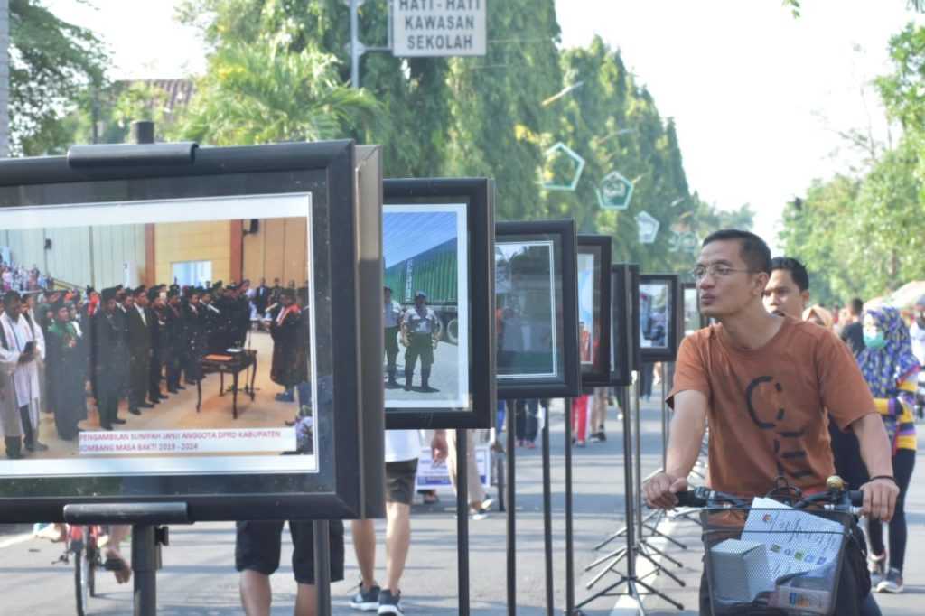 Jombang, jatim.kpu.go.id- Lakukan inovasi dalam sosialisasi kepada pemilih, KPU Kabupaten Jombang menggelar pameran foto penyelenggaraan pemilu serentak tahun 2019. Kegiatan tersebut berlangsung di lokasi car free day (CFD), Jl. KH. Wahid Hasyim, tepatnya di depan kantor DPRD setempat. Dalam pameran foto ini, KPU Jombang menampilkan hasil jepretan dari masyarakat maupun peserta pemilu. Foto-foto yang dipajang adalah foto foto tahapan pemilu, mulai dari tahapan awal hingga penetapan calon terpilih.