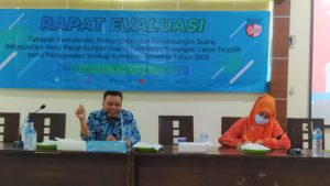 Hal ini diungkapkan Gogot saat memberikan sambutan pada Rapat Evaluasi Kedua Tahapan Pemungutan dan Penghitungan Suara, Rekapitulasi Hasil Penghitungan Suara, Penetapan Pasangan Calon Terpilih, serta Penggunaan Sirekap Pemilihan Serentak Tahun 2020 di aula kantor KPU Banyuwangi, jalan KH. Agus Salim Nomor 18a Banyuwangi hari ini (Senin, 8/3).