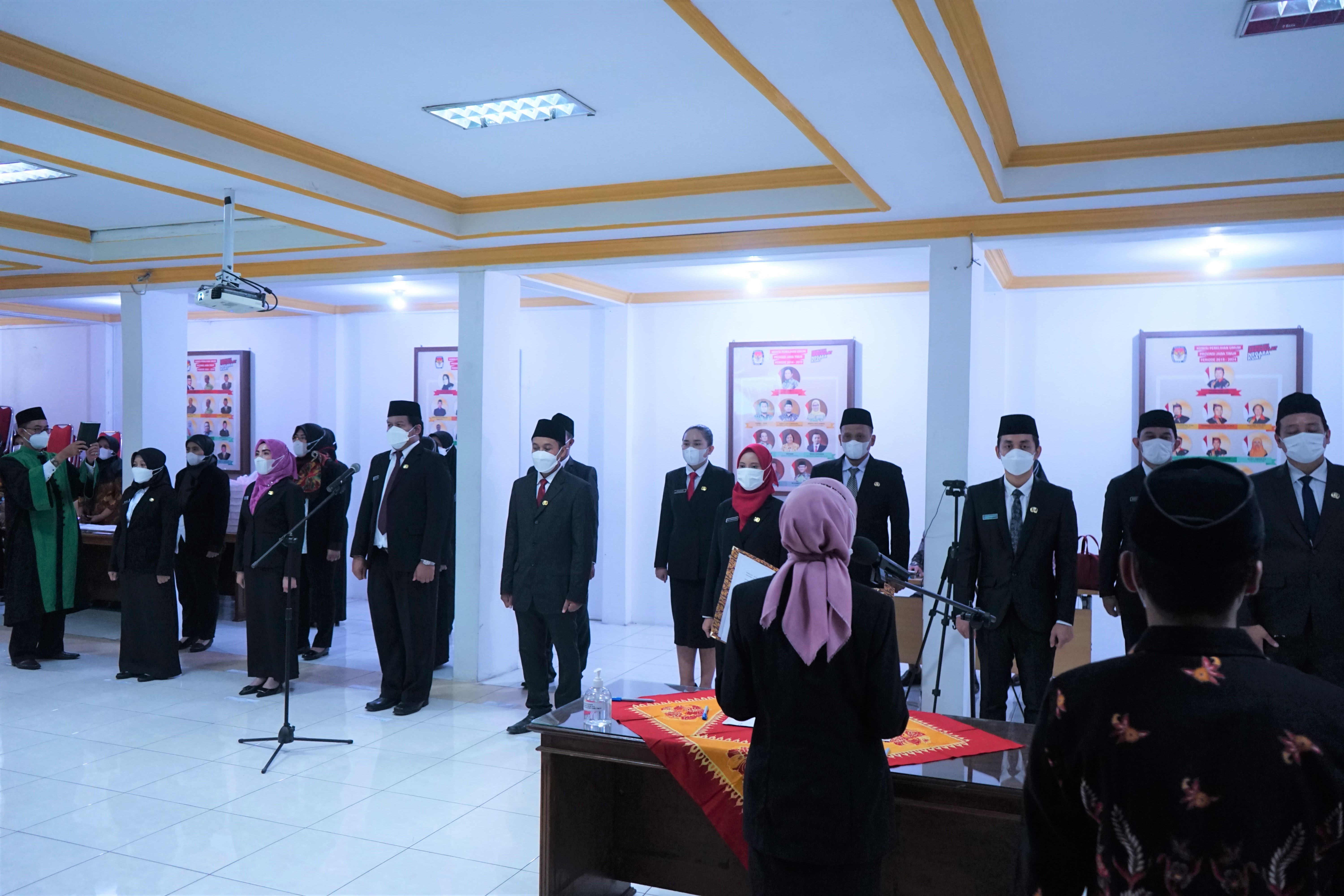 Turut mengikuti pelantikan secara luring di KPU Jatim yakni para Kasubbag dari KPU Kota Surabaya, para Kasubbag dari KPU Kabupaten Mojokerto, dan para Kasubbag dari KPU Kabupaten Bojonegoro.