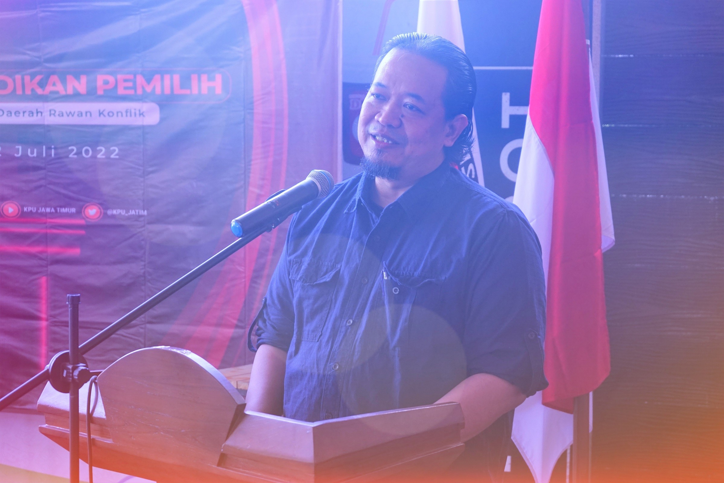 Dalam sambutannya, Komisoner Divisi Sosialisasi; Pendidikan Pemilih dan Partisipasi Masyarakat (Sosdiklih dan Parmas) KPU Jatim, Gogot Cahyo Baskoro memaparkan besarnya data pemilih pemula dan pemilih muda dalam pemilu 2019. "Partisipasi pemilu tahun 2024 yang akan datang, akan dipengaruhi tingkat parmas para pemilih pemula dan muda," kata pria kelahiran Magetan ini.