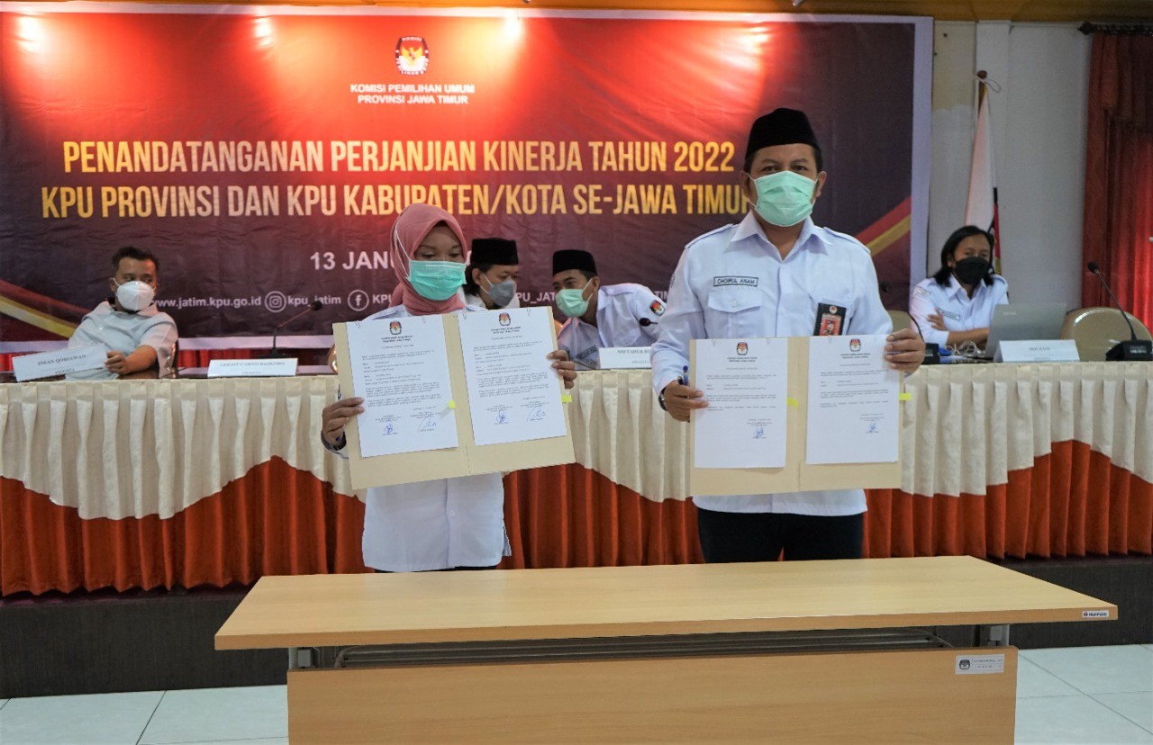 Penandatanganan PK Tahun 2022 KPU se-Jawa Timur Dilakukan Secara Serentak