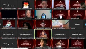 Kegiatan yang diikuti oleh seluruh Divisi Sosdiklih Parmas dan SDM serta Kasubbag KUL KPU Kabupaten/ Kota se-Jawa Timur, dan penyelenggara pemilihan di Jawa Timur ini berlangsung dari pukul 09.00 – 11.30 WIB secara daring melalui zoom meeting.