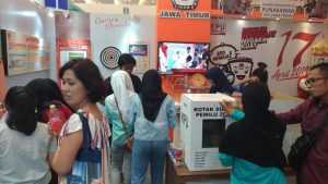 Surabaya, jatim.kpu.go.id - Stand Pemilu Expo Komisi Pemilihan Umum (KPU) Jawa Timur di hari ketiga pelaksanaan Jatim Fair 2018, Kamis (11/10) nenjadi primadona pengunjung. Jumlah pengunjung yang datang ke stand 53 - 54 di Grand City Surabaya, terus mengalami peningkatan, dengan berasal dari berbagai segmen pemilih serta pihak terkait.