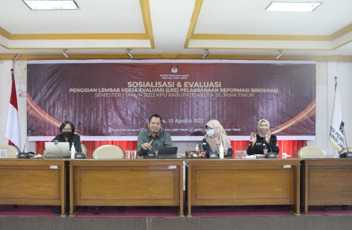 “Merujuk hasil evaluasi penilaian Reformasi Birokrasi yang dilakukan di lingkungan KPU melalui survei atau dokumentasi pengaduan masyarakat, KPU Jatim mengalami kenaikan penilaian, yaitu 95 dari 100. Berdasarkan hasil evaluasi tersebut menunjukkan bahwa KPU Jatim telah menunjukkan peningkatan tata kelola pemerintahan yang baik, dan kedepan harapannya semakin meningkat,” tutur Anam.