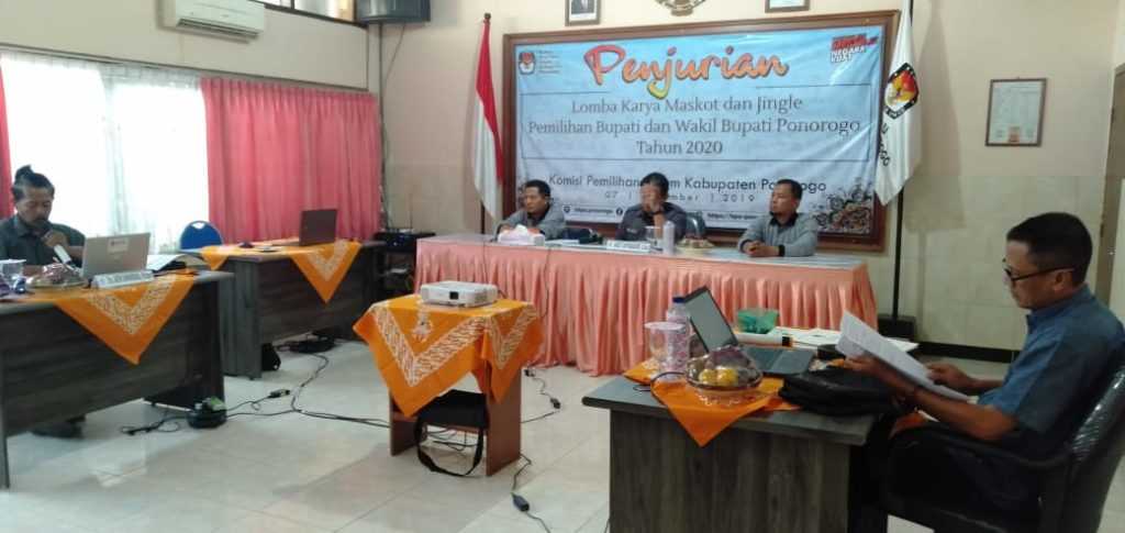 Selesai pengarahan dilanjutkan dengan penjurian maskot dan jingle. Juri terdiri dari Divisi Sosdiklih dan Parmas KPU Jatim, Gogot Cahyo Baskoro, Ketua PWI Ponorogo, Hadi, dan Ketua Dewan Kesenian Ponorogo, Arim Kamandaka.