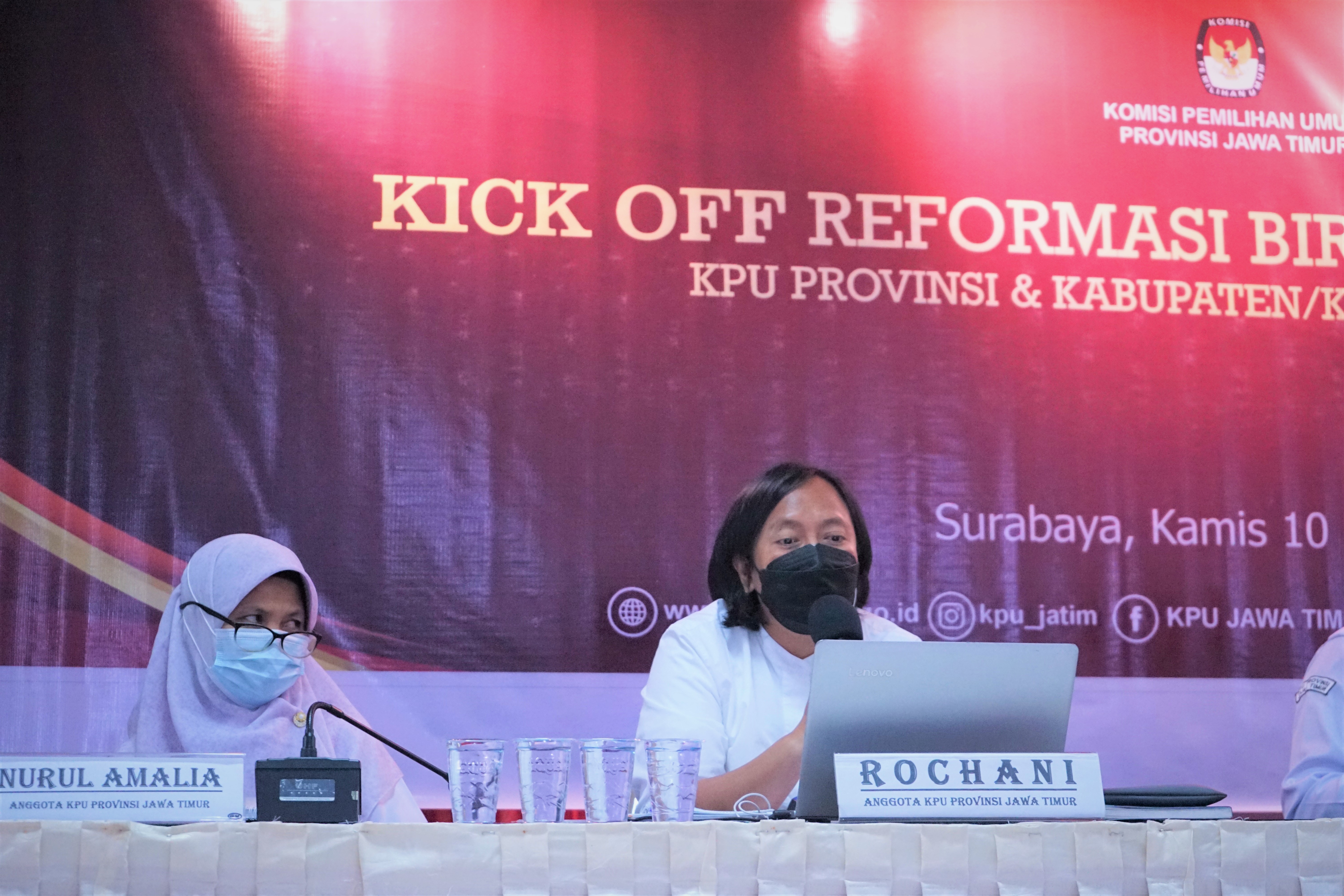 Hadir dari KPU Jatim yaitu Ketua, Choirul Anam; Divisi Sumber Daya Manusia, Penelitian dan Pengembangan (SDM Litbang), Rochani; Divisi Perencanaan dan Logistik, Miftahur Rozaq; Divisi Data dan Informasi, Nurul Amalia; Divisi Sosialisasi, Pendidikan Pemilih dan Partisipasi Masyarakat, Gogot Cahyo Baskoro; Sekretaris, Nanik Karsini; serta Tim Reformasi Birokrasi KPU Jatim.