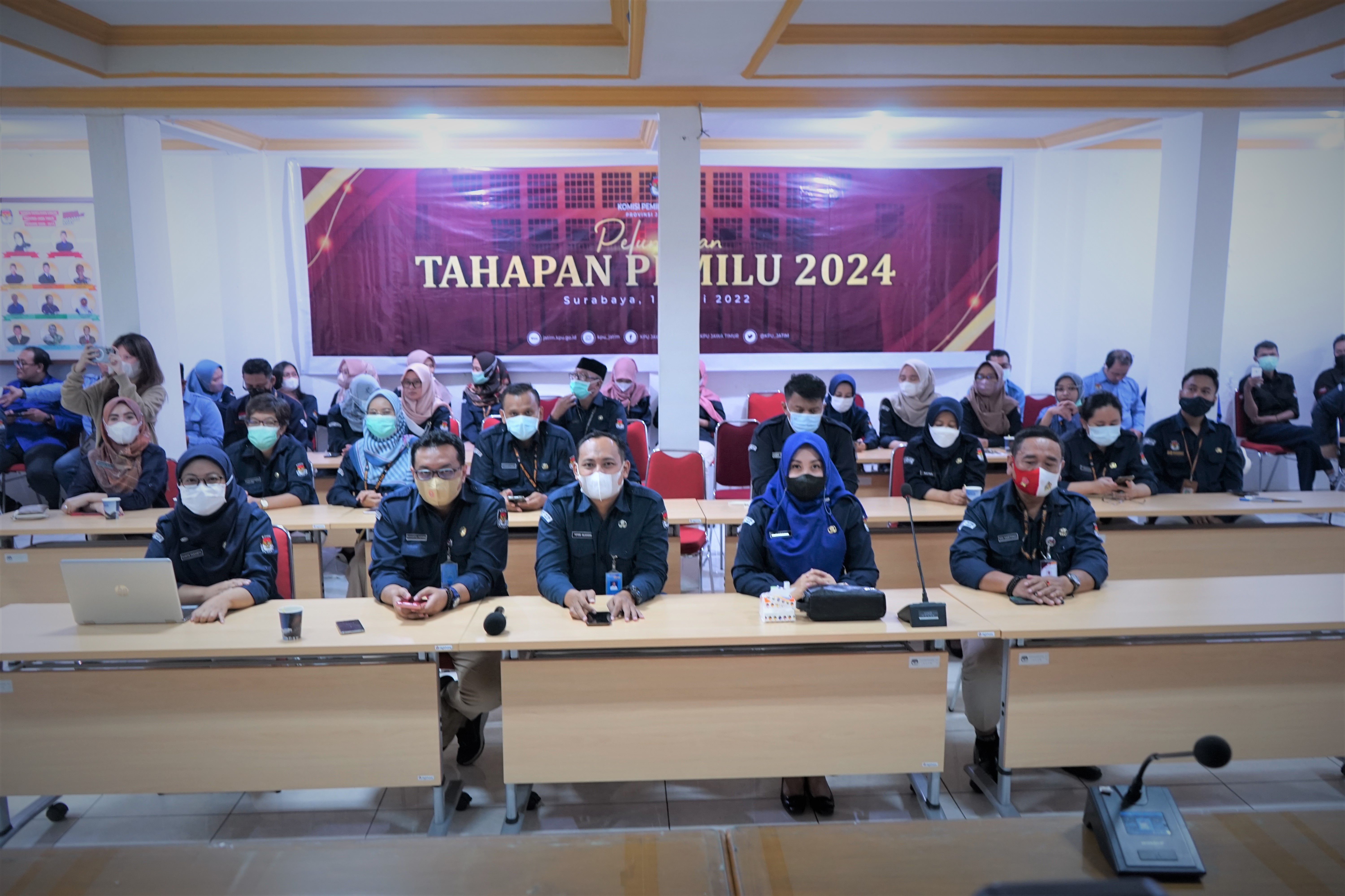 Pada malam peluncuran ini Ketua, Anggota dan Sekretaris KPU Jatim mengikuti secara langsung di Jakarta, sedangkan jajaran pejabat struktural, pejabat fungsional serta staf sekretariat mengikuti secara daring dari aula lantai 2 kantor KPU Jatim, di jalan Raya Tenggilis Nomor 1-3 Surabaya.