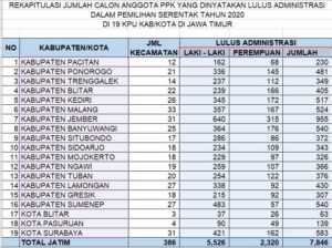 Di Jawa Timur ada 4 KPU Kabupaten/ Kota yang telah mendapatkan persetujuan KPU Provinsi untuk melaksanakan Seleksi Tertulis dengan metode CAT yaitu, KPU Kabupaten Pacitan, KPU Kabupaten Ngawi, KPU Kabupaten Blitar dan KPU Kota Blitar. Sedangkan 15 KPU Kabupaten/Kota lainnya melaksanakan seleksi tertulis menggunakan kertas lembar jawaban.