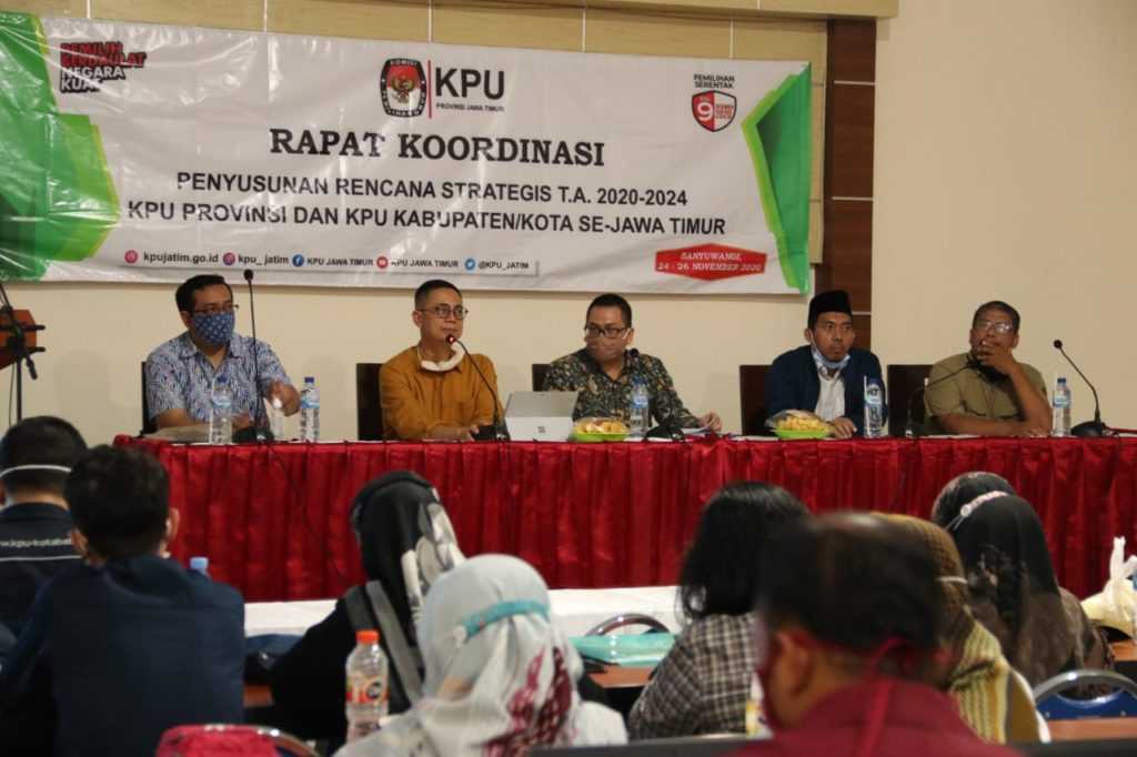 Demikian diungkapkan Kepala Biro Perencanaan KPU RI, Sumariyandono pada hari kedua Rapat Koordinasi Penyusunan Rencana Strategis 2020-2024 KPU Provinsi dan KPU Kabupaten/Kota Se-Jawa Timur Rabu, 26 November 2020 di aula kantor KPU Kabupaten Banyuwangi.