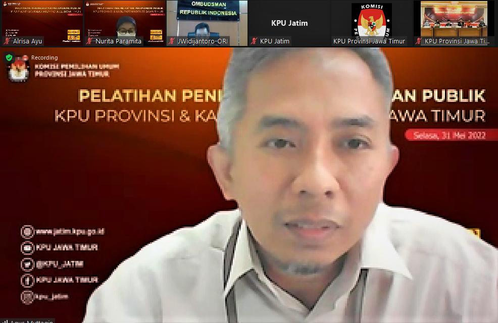“Sehingga pada kesempatan ini KPU Jatim menghadirkan narasumber yang memang ahli di bidangnya yakni Anggota Ombudsman Republik Indonesia, Bapak Johannes Widijantoro yang memberikan materi bertema Menjaga Integritas dan Kemandirian Penyelenggara Pemilu dalam Menjalankan Fungsi Pelayanan Publik yang Prima Pada Penyelenggaraan Pemilu 2024. Lalu, narasumber lain adalah Bapak Agus Muttaqien selaku Kepala Ombudsman Perwakilan Jawa Timur yang memberikan materi terkait Inovasi Pelayanan Publik sebagai Upaya Peningkatan Kualitas Layanan Menuju Standar Pelayanan Publik yang Prima dan Berkualitas dalam Penyelenggaraan Pemilu 2024,” paparnya (31/5/2022).