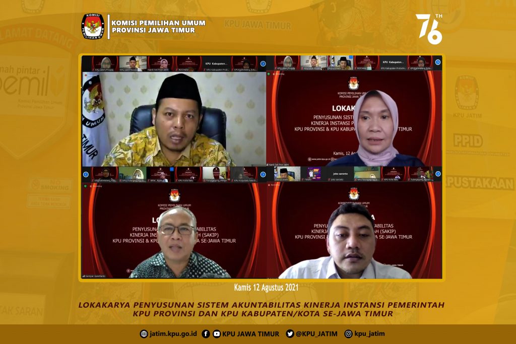 Surabaya, jatim.kpu.go.id- Guna meningkatkan kualitas penyusunan Sistem Akuntabilitas Kinerja Instansi Pemerintah (SAKIP) di wilayah Jawa Timur, Komisi Pemilihan Umum Provinsi Jawa Timur (KPU Jatim) mengadakan Lokakarya Penyusunan SAKIP KPU Provinsi dan KPU Kabupaten/Kota se-Jawa Timur. Lokakarya berlangsung dari pukul 09.00-13.00 WIB melalui media dalam jaringan (daring).