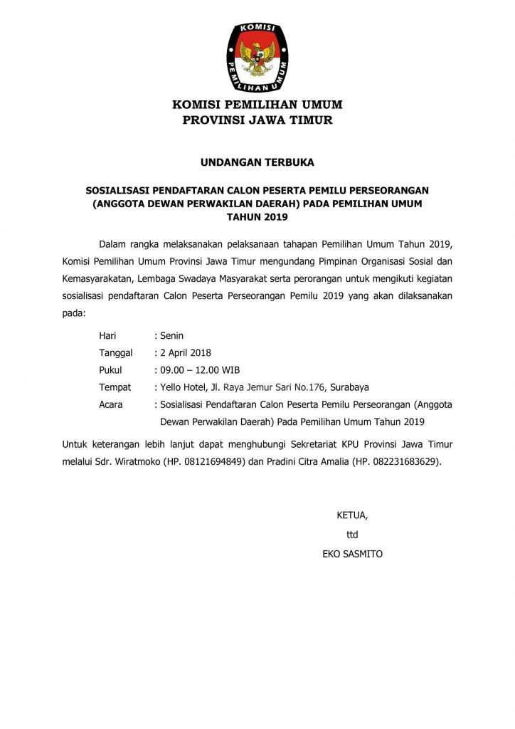 UNDANGAN TERBUKA SOSIALISASI PENDAFTARAN CALON PESERTA PEMILU PERSEORANGAN (ANGGOTA DPD) PADA PEMILU 2019