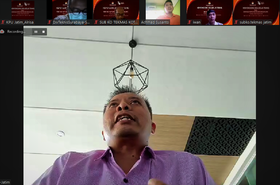 Surabaya, jatim.kpu.go.id- Divisi Teknis Penyelenggaraan Komisi Pemilihan Umum Provinsi Jawa Timur (KPU Jatim), Insan Qoriawan mengungkapkan meskipun tahapan pencalonan pemilu secara nasional sama, namun dinamika yang terjadi di setiap daerah berbeda-beda. Demikian disampaikan pada Kelas Teknis Menyongsong 2024 Edisi 13 yang digelar secara virtual, Kamis (2/9), dari jam 10 pagi sampai 1 siang. Sebelumnya Insan menjelaskan jika apa yang diceritakan penyaji dan peserta dalam Kelas Teknis ini tadi bisa menjadi salah satu referensi bahwa ada banyak kejadian dan dinamika yang berbeda-beda di setiap tahapan. “Ada banyak dinamika yang dialami oleh masing-masing kabupaten/ kota dalam tahapan pencalonan dan tentu tidak selalu sama, meskipun menghadapi tahapan yang sama. Setiap daerah memiliki penyelesaian berbeda-beda, tergantung subjek, para aktor pada kabupaten/ kota tersebut,” terangnya (2/9/2021). Lebih lanjut, tahapan pencalonan dalam pemilu terdiri dari pengumuman pengajuan daftar calon, pengajuan daftar calon, verifikasi kelengkapan administrasi bakal calon, penyampaian hasil verifikasi kelengkapan administrasi bakal calon, perbaikan daftar calon; syarat calon serta pengajuan bakal calon pengganti, verifikasi terhadap perbaikan daftar calon dan syarat, penyusunan DCS (Daftar Calon Sementara), pengumuman DCS, masukan dan tanggapan masyarakat atas DCS, permintaan klarifikasi, pemberitahuan pengganti DCS, pengajuan penggantian bakal calon, verifikasi pengganti DCS, penyusunan DCT (Daftar Calon Tetap), penetapan DCT, dan pengumuman DCT. Pada tahapan pencalonan tersebut sebagaimana disampaikan Insan, terdapat satu titik kritis yang belum sempat dibahas oleh penyaji dan peserta. Yakni, potensi penggantian calon Anggota DPRD Kabupaten/ Kota sebelum ditetapkan menjadi DCT. “Mendekati penetapan DCT, tiba-tiba dengan berbagai alasan dan motivasi ada pengusulan penggantian calon. Ini perlu diperhatikan dengan baik dan seksama, apakah usulan penggantian ini sesuai atau tidak dengan ketentuan,” ujar Divisi Teknis Penyelenggaraan KPU Jatim. Mengakhiri ulasannya, Insan berharap forum kelas teknis ini menjadi ruang berbagi ilmu dan pengalaman terkait tahapan Pencalonan Anggota DPRD Kabupaten/ Kota pada Pemilu Tahun 2019. Sehingga menjadi modal untuk menghadapi tahapan pencalonan pada pemilihan 2024 nanti. Berkesempatan menjadi penyaji pada Kelas Teknis edisi 13 yaitu, Divisi Teknis Penyelenggaraan KPU Kabupaten Blitar, Nikmatus Sholihah serta Divisi Teknis Penyelenggaraan KPU Kabupaten Nganjuk, Nanang Wahyudi. Sementara itu, bertindak sebagai pemandu dalam kegiatan ini yakni, Subkoordinator Tekmas KPU Kabupaten Blitar, Burhan. Dan peserta terdiri dari penyelenggara di lingkungan KPU Provinsi dan KPU Kabupaten/ Kota di Jawa Timur. (AACS)