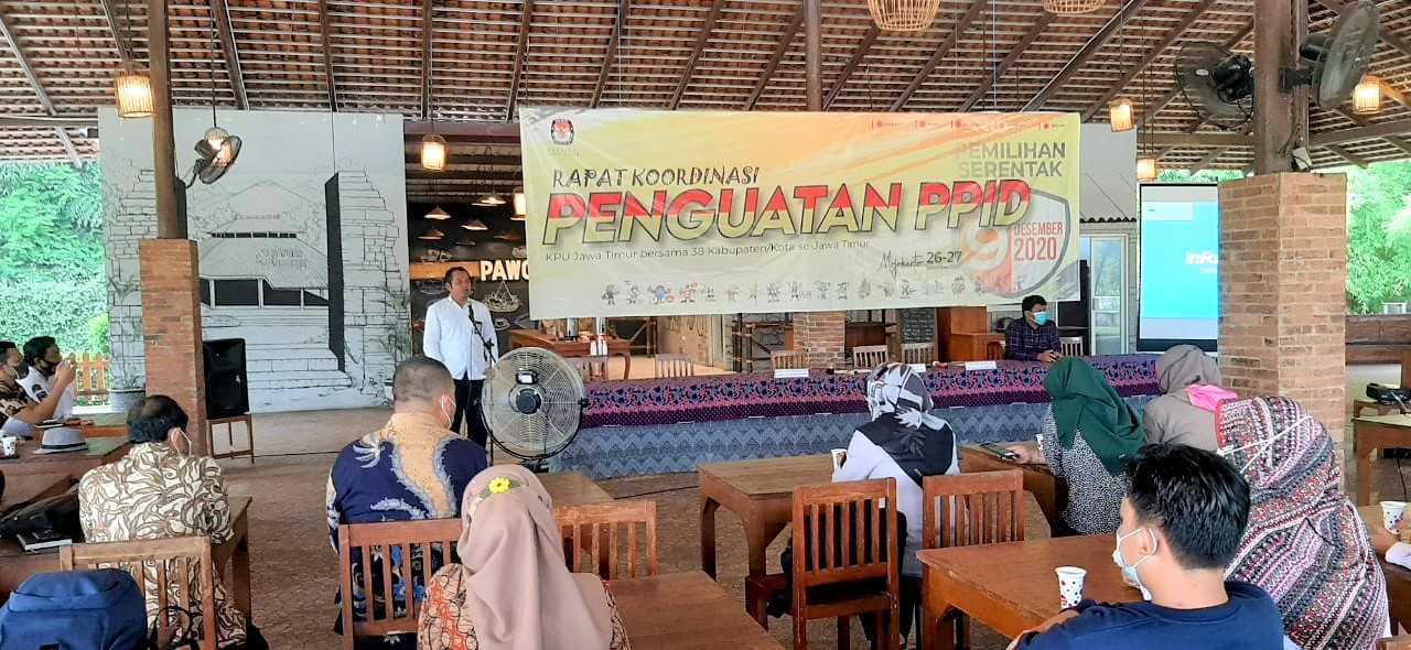 Mojokerto, jatim.kpu.go.id- Dua hari kedepan, Kamis-Jum’at, tanggal 26 sampai 27 November 2020, Komisi Pemilihan Umum Provinsi Jawa Timur mengadakan rapat koordinasi (rakor) bersama dengan 38 KPU Kabupaten/ Kota di Jawa Timur. Rakor Penguatan PPID KPU Provinsi bersama dengan KPU Kabupaten/ Kota ini bertujuan untuk meningkatkan kualitas pelayanan informasi publik di wilayah Jawa Timur. Ketua KPU Jatim, Choirul Anam saat memberikan sambutan menyampaikan bahwa KPU tidak hanya melaksanakan tugas-tugas terkait dengan tahapan Pemilihan. “Tapi KPU juga memiliki tugas rutin, salah satunya terkait dengan pelayanan informasi publik. Dalam hal pengelolaan dan pelayanan informasi publik untuk mewujudkan keterbukaan informasi publik, KPU memiliki PPID atau Pejabat Pengelola Informasi dan Dokumentasi,” katanya (26/22/2020). PPID KPU RI, Provinsi, Kabupaten/ Kota saat ini masing-masing telah dilengkapi dengan aplikasi yang dibangun sebagai bentuk transparansi, akuntabilitas, serta profesionalitas KPU yang disebut dengan e-PPID. “Masyarakat bisa mendapatkan layanan informasi publik tanpa harus datang langsung ke kantor KPU. Sehingga untuk mendapatkan informasi publik di KPU menjadi lebih cepat dan mudah,” terang Divisi Data dan Informasi KPU Jatim periode 2014-2019 ini. Mengimbuhkan Ketua KPU Jatim, Divisi  Sosdiklih dan Parmas KPU Jatim, Gogot Cahyo Baskoro menjelaskan pengelolaan dan penyediaan informasi publik ini menjadi tupoksi Divisi Sosdiklih; Parmas dan SDM kalau di Kabupaten/ Kota. “Hal ini sebagaimana dituangkan dalam PKPU Nomor 3 Tahun 2020 tentang Perubahan atas PKPU Nomor 8 Tahun 2019 tentang Tata Kerja Komisi Pemilihan Umum, Komisi Pemilihan Umum Provinsi, dan Komisi Pemilihan Umum Kabupaten/ Kota,” jelasnya. Berikutnya pada hari pertama ini, peserta mendapatkan materi mengenai Sosialisasi Tugas, Fungsi, Susunan Organisasi dan Tata Kerja Pengelolaan Pelayanan Informasi Publik pada Sekretariat Jenderal KPU, Sekretariat KPU Provinsi, dan Sekretariat KPU Kabupaten/ Kota serta Panduan Penggunaan Media Sosial sebagai Bentuk Keterbukaan Informasi Publik. Sedangkan di hari kedua, peserta akan mendapatkan materi mengenai Pengantar Pengelolaan Pelayanan Informasi Publik serta Penyusunan Daftar Informasi Publik disampaikan oleh Divisi Sosdiklih dan Parmas KPU RI, I Dewa Kade Wiarsa Raka Sandi, Panduan Penggunaan e-PPID sebagai bentuk Keterbukaan Informasi Publik KPU yang disampaikan oleh Wakaro Teknis dan Parmas KPU RI, Supriatna, serta simulasi Penggunaan e-PPID oleh Tim PPID KPU RI, Didi Suhaidi dan Satrio Mahadi. Rakor yang diadakan di Ladang Anggrek, jalan Raden Patah Desa Lebaksono, Kabupaten Mojokerto ini melibatkan Divisi Sosdiklih; Parmas dan SDM serta Kasubbag Teknis dan Hupmas/ operator e-PPID dari 38 KPU Kabupaten/ Kota se-Jawa Timur. Sementara itu hadir dari KPU Jatim, Ketua, Choirul Anam, Divisi Sosdiklih dan Parmas, Gogot Cahyo Baskoro, serta staf Subbag Teknis dan Hupmas. (AACS)