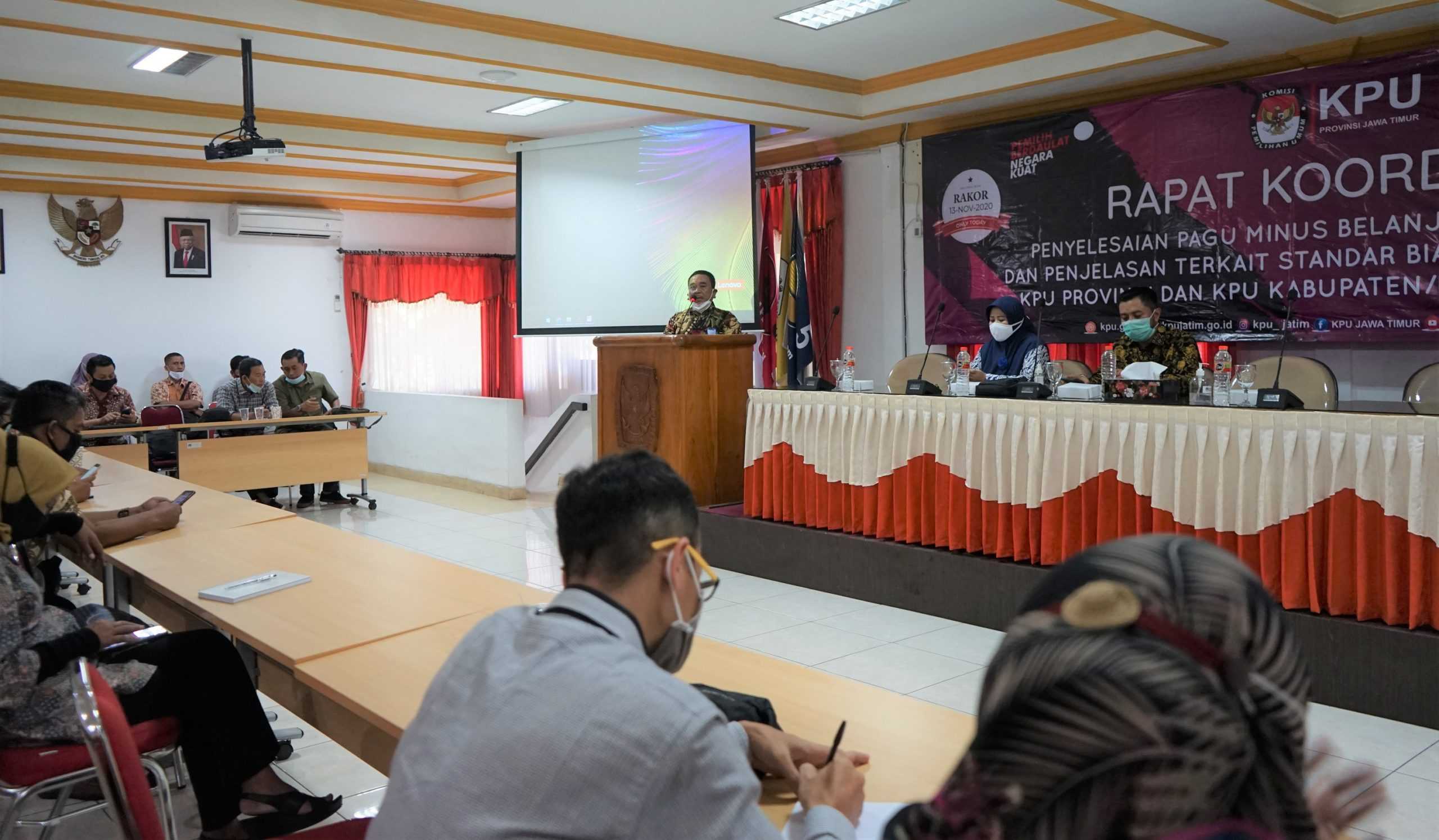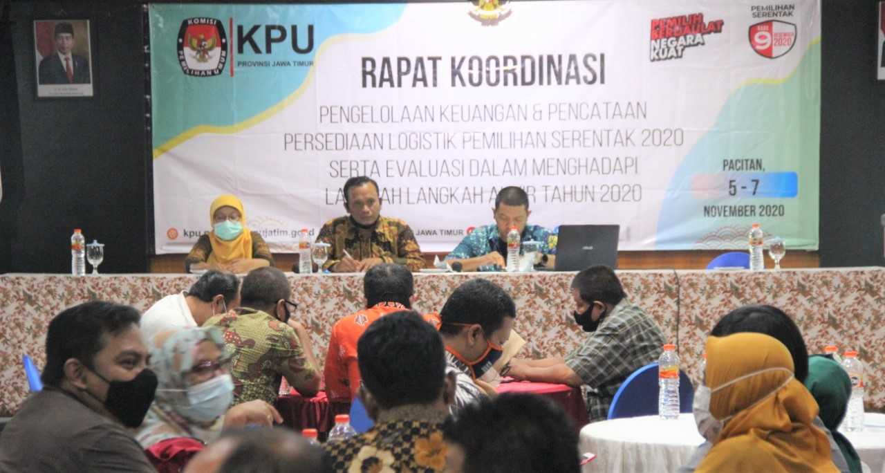 Surabaya, jatim.kpu.go.id- Komisi Pemilihan Umum Provinsi Jawa Timur (KPU Jatim) menggelar rapat koordinasi bersama dengan 19 KPU Kabupaten/ Kota hari ini sampai dengan besok, Rabu-Kamis (11-12/11) di aula lantai II kantor KPU Jatim, jalan Raya Tenggilis Nomor 1-3 Surabaya. Rapat koordinasi kali ini guna membahas persiapan pemeliharaan dan inventarisasi logistik Pemilihan Serentak Lanjutan Tahun 2020. Peserta rakor terdiri dari Ketua, Sekretaris serta Kasubbag Umum dan Logistik dari 19 KPU Kabupaten/ Kota di Jawa Timur yang menyelenggarakan Pemilihan Serentak Lanjutan Tahun 2020. Sementara itu dari KPU Jatim nampak hadir Ketua, Choirul Anam, Divisi Sosdiklih dan Parmas, Gogot Cahyo Baskoro, Divisi Teknis Penyelenggaraan, Insan Qoriawan, serta Divisi Perencanaan dan Logistik, Miftahur Rozaq, serta staf subbag Umum dan Logistik. Ketua KPU Jatim, Choirul Anam mengungkapkan bahwa logistik kebutuhan Pemilihan Serentak Lanjutan Tahun 2020 saat ini sedang disiapkan dan beberapa logistik sudah mulai berdatangan. “Sehingga dalam rangka penerimaan dan penyimpanan logistik ini, penting untuk mempersiapkan pemeliharaan dan inventarisasinya,” jelas Anam saat memberikan sambutan pada Rakor Persiapan Pemeliharaan dan Penyimpanan Logistik dalam Rangka Penerimaan dan Penyimpanan Logistik Pemilihan Serentak Lanjutan Tahun 2020. Dalam penerimaan logistik di Kabupaten/ Kota, Ketua KPU Jatim berpesan kepada petugas penerima barang agar tidak hanya sekedar menerima logistik dan menandatangani tanda terima yang diserahkan penyedia. “Namun, penerima barang juga harus memastikan jumlah logistik yang diterima sesuai dengan kebutuhan apa tidak,” tegas Anam. Berikutnya, Anam berharap pula agar Kabupaten/ Kota dapat belajar dari Pemilu 2019 yang lalu terkait dengan pemenuhan logistik ini. “Sehingga, tidak akan terulang di Pemilihan Serentak Tahun 2020 ini,” tutupnya. (AACS)