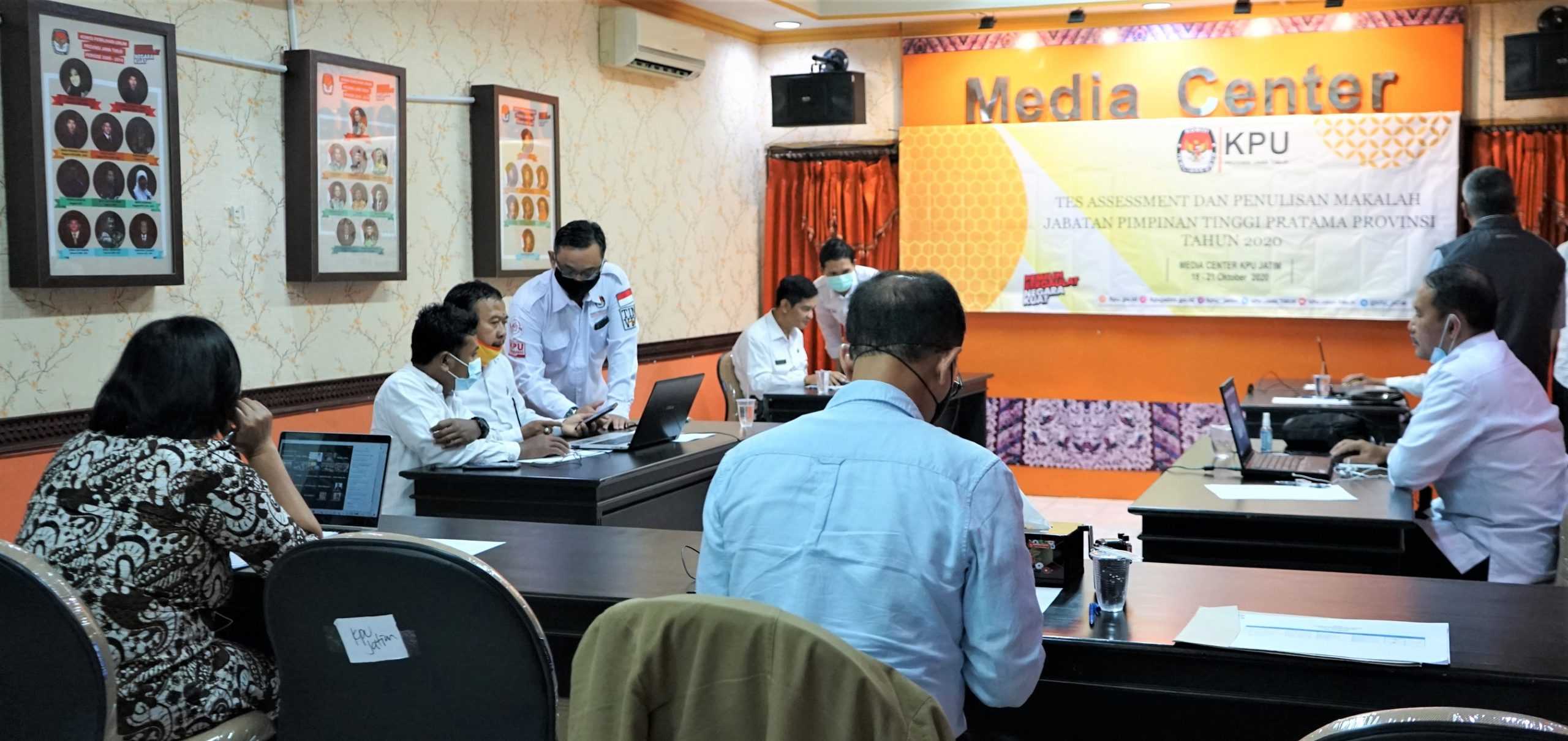 Surabaya, jatim.kpu.go.id- Hari ini, Senin sampai besok Rabu (19-21/10), empat (4) orang peserta seleksi jabatan Pimpinan Tinggi Pratama (Eselon II.a) pada Sekretariat KPU Provinsi Tahun 2020 mengikuti tes assessment dan penulisan makalah di ruang Media Center kantor KPU Jatim, jalan Raya Tenggilis Nomor 1-3 Surabaya. Keempat orang peserta ini merupakan peserta yang berasal dari Jawa Timur. Kepala Biro Perencanaan dan Data KPU RI, Sumariyandono selaku anggota Panitia Seleksi yang mendampingi tes assessment dan penulisan makalah di KPU Jatim, menjelaskan bahwa kegiatan ini merupakan salah satu rangkaian dari seleksi terbuka pengisian jabatan Sekretaris KPU Provinsi (Eselon II.a). “Setiap peserta dalam seleksi ini diperkenankan memilih jabatan Sekretaris di dua (2) tempat. Ini adalah tes assessment dan penulisan makalah jabatan Eselon II.a yang pertama kali dilakukan secara daring,” ungkapnya (19/10/2020). Pria yang akrab disapa Dono ini mengungkapkan pula jika ada 7 posisi Sekretaris KPU Provinsi yang kosong, yakni di Provinsi Bengkulu, Sumatera Selatan, D.I Yogyakarta, Jawa Timur, Sulawesi Tengah, Maluku, dan Papua Barat. Berikutnya ada 34 orang peserta yang mengikuti seleksi jabatan Pimpinan Tinggi Pratama (Eselon II.a) pada Sekretariat KPU Provinsi Tahun 2020. Ke-34 orang peserta ini mengikuti seleksi assessment dan penulisan makalah di tujuh tempat berdasarkan daerah asalnya atau terdekat dengan daerah asalnya. “Pada hari ke-1, peserta mengikuti tes assessment (dengan CAT, materi terkait kepribadian). Hari ke-2, peserta akan mengikuti leadership group discussion. Pada sesi ini akan dibentuk beberapa kelompok dan melakukan diskusi, nanti leader-nya bergantian. Hari ke-3, ada penulisan makalah. Peserta akan dikasih tema dan struktur penulisan pada hari itu juga, serta dikasih waktu untuk mengerjakan,” papar Kepala Biro Perencanaan dan Data KPU RI ini. Lebih lanjut, Dono mengatakan setelah tahapan assessment dan penulisan makalah, tahapan berikutnya ialah tahapan wawancara. “Kemarin sudah ada tahapan tes administrasi, lalu sekarang tahapan tes assessment dan penulisan makalah (biasanya tahapan tes assessment dan penulisan makalah dipisah-red), dan terakhir tahapan tes wawancara,” tutupnya. Mengimbuhkan yang telah disampaikan Kepala Biro Perencanaan dan Data KPU RI, Suharto selaku Kabag Program; Data; Organisasi dan SDM KPU Jatim menyampaikan empat (4) orang peserta Seleksi Jabatan Eselon II.a yang mengikuti tes assessment dan penulisan makalah di KPU Jatim, antara lain Dedih Sutardi, Nanik Karsini, Ahmad Fahruddin, dan Moh. Sapiq. (AACS)