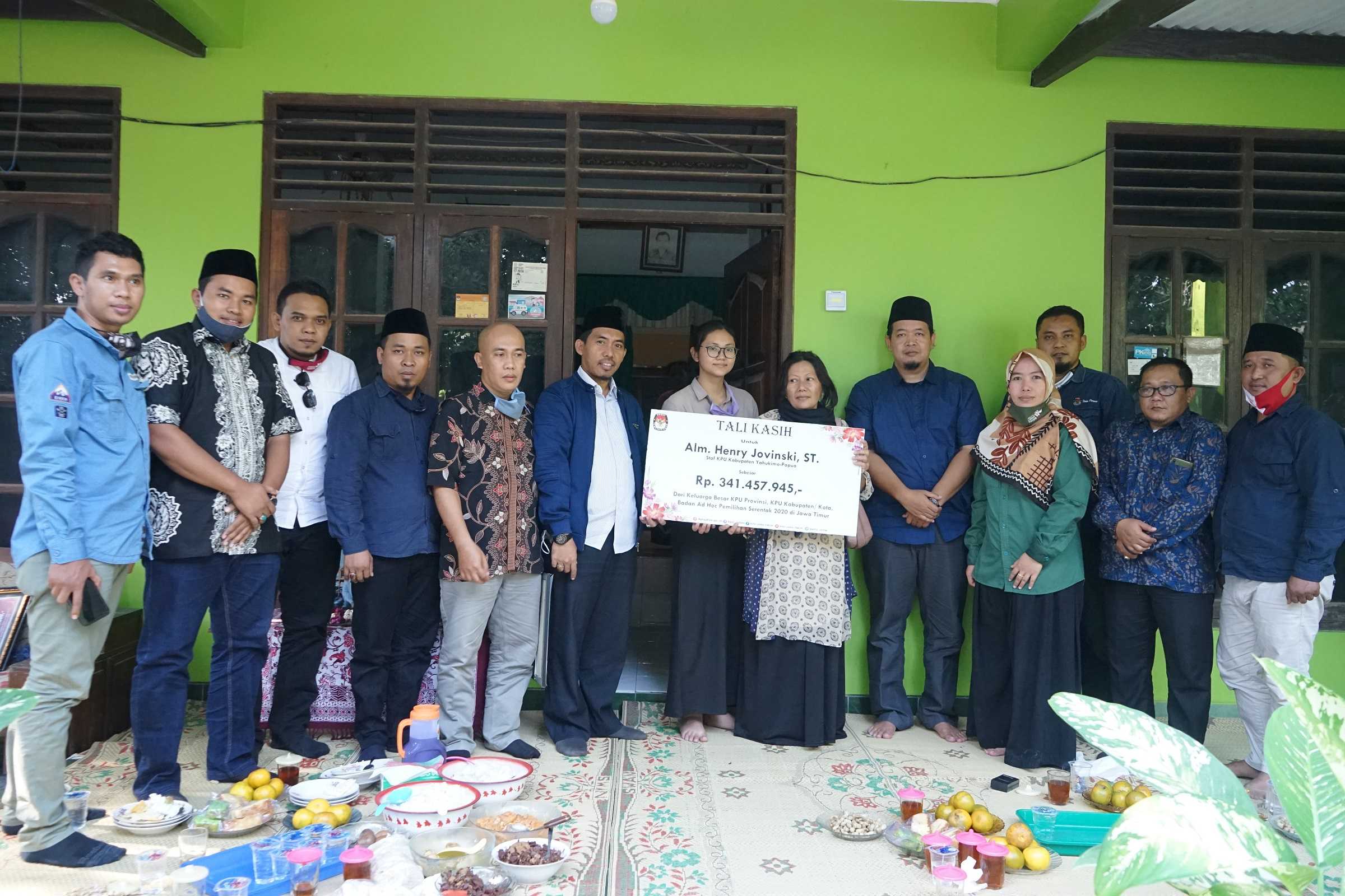 Sleman, jatim.kpu.go.id- Keluarga Almarhum Henry Jovinski, ST., staf KPU Kabupaten Yahukimo Papua menyampaikan terimakasih kepada seluruh penyelenggara di Jawa Timur yang menunjukkan kepeduliannya kepada almarhum. Demikian disampaikan pihak keluarga saat rombongan KPU Jatim dan perwakilan KPU Kabupaten/ Kota di Jawa Timur datang ke rumah duka di Sleman-Yogyakarta. Ibu Almarhum Henry Jovinski, Vivin, mengaku bahwa ini bentuk kepedulian yang luar biasa. “Kami berterima kasih, karena Bapak/ Ibu dari keluarga besar di Jawa Timur berkenan jauh-jauh datang kemari menyampaikan belasungkawa secaralangsung, dan bahkan mendo’akan anak Kami. Meskipun Bapak/ Ibu belum mengenal anak Kami sebelumnya. Namun sekali lagi Mas Henry ini sosok yang polos, anak yang lugu, anak yang baik, semoga teman-teman kantor di sana pun bisa ikut merasakan kehadirannya,” ungkap Vivin (24/8/2020). Vivin menyampaikan pula donasi yang disampaikan dari keluarga besar penyelenggara di Jawa Timur tentu akan dimanfaatkan dengan baik dan bijak untuk melanjutkan apa yang dicita-citakan almarhum Henry Jovinski. “Almarhum bercita-cita ingin menyekolahkan adiknya, Helga Mauli Jovinska yang saat ini sedang ada di bangku SMA sampai ke jenjang perguruan tinggi. Selain itu almarhum juga ingin membiayai operasi mata adiknya. Sekali lagi semoga Allah SWT memberkahi Bapak/ Ibu semua dengan kebahagiaan dan rezeki yang melimpah, dan terimakasih atas kepeduliannya kepada keluarga Kami,” tutur Vivin dengan menahan kesedihan. Sementara itu, adik almarhum Henry Jovinski, Helga Mauli Jovinska juga ikut menyampaikan terimakasih. “Kami dari pihak keluarga menyampaikan terimakasih atas kepedulian keluarga besar KPU, yang juga berkenan mengunjungi keluarga Kami, bahkan juga berkenan mengunjungi makam kakak Saya dan mendoakan kakak Saya,” katanya. (AACS)
