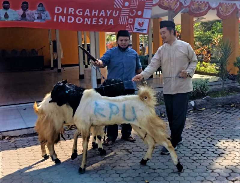 Probolinggo, jatim.kpu.go.id- KPU Kabupaten Probolinggo melaksanakan penyembelihan hewan kurban di halaman kantor (Minggu, 2/8). Kegiatan ini dimaksudkan untuk memupuk kepedulian dengan sesama. Ketua KPU Kabupaten Probolinggo, Lukman Hakim pada kesempatan ini menyampaikan bahwa kegiatan penyembelihan hewan kurban semata-mata ingin menggapai hikmah atas turunnya perintah berkurban dengan sedikit berbagi daging kurban kepada masyarakat sekitar KPU dan juga para staf. "Penyembelihan hewan kurban merupakan manifestasi dari ketulusan dan keikhlasan serta tunduk patuh hamba terhadap perintah Allah SWT. Inilah yang ingin diteladani keluarga besar KPU Kabupaten Probolinggo, atas peristiwa agung antara Nabi Ibrahim AS dan Nabi Ismail AS," terang Ketua KPU Kabupaten Probolinggo (2/8/2020). Selain itu menurut Divisi Teknis Penyelenggaraan KPU Kabupaten Probolinggo, Agus Hariyanto Andinata, penyembelihan hewan kurban yang dilaksanakan di KPU tahun ini harapannya bisa menebar keberkahan dan kemanfaatan kepada seluruh staf dan warga sekitar kantor KPU Kabupaten Probolinggo. "Jangan dilihat dari banyak sedikitnya hewan sembelihan. Tetapi pesan yang ingin disampaikan adalah bentuk kepedulian dan ketulusan KPU kepada masyarakat sekitar. Apalagi, saat ini masih dalam situasi pandemi Covid-19," ujar komisioner Divisi Teknis ini. Terakhir Agus berharap semoga atas terselenggaranya penyembelihan hewan kurban di KPU kabupaten Probolinggo membawa berkah dan manfaat untuk segenap keluarga besar dan juga masyarakat sekitar. (HumasProbolinggo/ ed. Red)