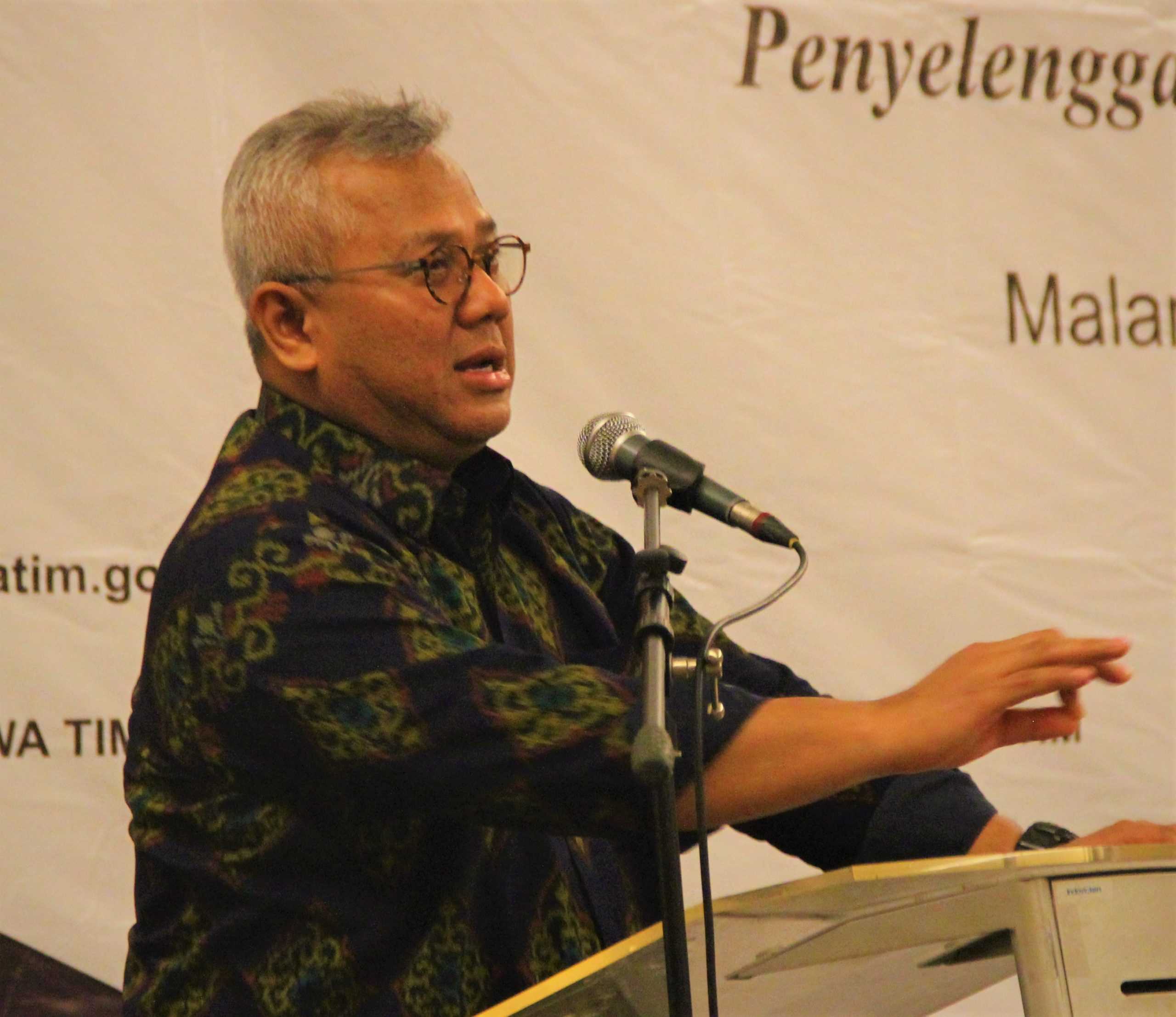 Kegiatan ini dihadiri oleh Ketua KPU RI, Arief Budiman, Deputi Bidang Dukungan Teknis KPU RI, Muhammad Eberta Kawima, Ketua KPU Jatim, Choirul Anam, serta Anggota KPU Jatim, Gogot Cahyo Baskoro, Muhammad Arbayanto, Rochani, Insan Qoriawan, Miftahur Rozaq, dan Nurul Amalia. Sementara itu, peserta kegiatan terdiri dari Ketua dan Anggota KPU se-Provinsi Jawa Timur.