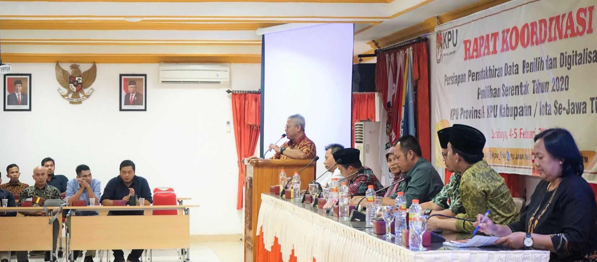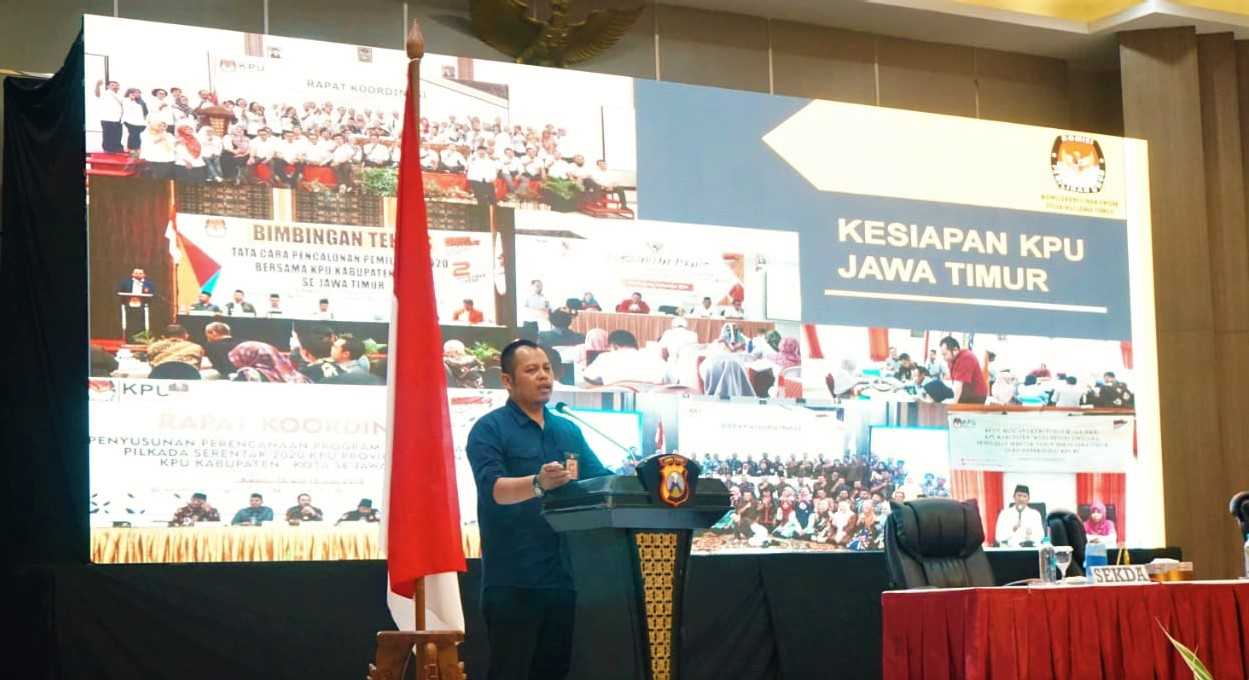 Surabaya, jatim.kpu.go.id- Hadir sebagai narasumber dalam kegiatan Gelar Operasional dan Pembinaan Kepolisian Daerah Jawa Timur (Polda Jatim), Ketua Komisi Pemilihan Umum Jawa Timur (KPU Jatim), Choirul Anam menyampaikan kesiapan jajarannya dalam pelaksanaan pemilihan serentak tahun 2020 di Jawa Timur. Acara ini berlangsung hari ini, Kamis (13/2), di gedung Mahameru Mapolda Jatim. Mengawali paparannya Ketua KPU Jatim menyampaikan pemilihan serentak tahun 2020 di Jawa Timur diikuti oleh Kabupaten/ Kota yang melaksanakan pemilihan serentak pada tahun 2015 yang lalu dan kepala daerahnya menjabat sampai dengan tahun 2024. “Kita di Jawa Timur, akan 19 KPU Kabupaten/ Kota yang menyelenggarakan pemilihan serentak tahun 2020. Yakni, Pacitan, Ponorogo, Trenggalek, Blitar, Kediri, Malang, Jember, Banyuwangi, Situbondo, Sidoarjo, Mojokerto, Ngawi, Tuban, Lamongan, Gresik, Sumenep, Kota Blitar, Kota Pasuruan dan Kota Surabaya,” tutur Anam (13/2/2020). Kemudian, total anggaran yang dibutuhkan dalam pemilihan serentak 2020 di 19 Kabupaten/ Kota ini sebesar Rp 1.047.478.280.449,00. Sampai hari ini, 14 Kabupaten/ Kota dari 19 Kabupaten/ Kota yang melakukan pemilihan 2020, terindikasi akan ada bakal pasangan calon perseorangan. “Karena di 14 Kabupaten/ Kota tersebut bakal pasangan calon perseorangan sudah menyerahkan mandat untuk mendapatkan user/ akun SILON (Sistem Informasi Pencalonan),” ungkap Ketua KPU Jatim. Ketua KPU Jatim ini juga menyampaikan bahwa beberapa kesiapan yang sudah dilakukan KPU Jatim pada tahapan pemilihan serentak tahun 2020, diantaranya melaksanakan koordinasi efektif dengan Pemprov Jawa Timur dalam rangka persiapan pelaksanaan pemilihan 2020, aktif melaksanakan pendampingan dan review terkait pengajuan anggaran hibah dan rancangan tahapan pemilihan 2020, melaksanakan bimtek / rakor terkait pencalonan baik perseorangan maupun partai politik/ gabungan partai politik, melaksanakan pembinaan kepada seluruh ASN di lingkungan KPU se-Jawa Timur untuk kesiapan pemilihan. Selain dari KPU Jatim, hadir pula untuk memberikan pembekalan yaitu, Anggota Bawaslu Provinsi Jawa Timur, Ikhwanudin Alfianto. (AACS)