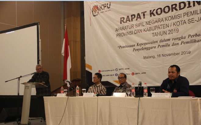 Malang, jatim.kpu.go.id- Beragamnya latar belakang keilmuan Divisi Hukum dan Pengawasan KPU Kabupaten/ Kota di Jawa Timur, menjadi perhatian khusus Komisi Pemilihan Umum Jawa Timur. Untuk itu KPU Jatim memberikan Bimbingan Teknis (Bimtek) Paralegal dan Legal drafting hari ini sampai dengan besok hari Selasa (16-19 November 2019), bertempat di The Balava Hotel, jalan Kolonel Sugiono Nomor 6 Malang. Selain Divisi Hukum dan Pengawasan, diundang dalam Bimtek ini adalah Kepala Subbagian Hukum dari 38 KPU Kabupaten/ Kota di Jawa Timur. Komisioner KPU Jatim, Divisi Hukum dan Pengawasan, Muhammad Arbayanto menjelaskan bahwa untuk mengawali Bimtek Paralegal dan Legal Drafting peserta akan mengerjakan pre test. “Pre test ini untuk menjajaki sejauh mana kemampuan, pemahaman, dan wawasan legal drafting dan ilmu kehukuman peserta Bimtek. Sehingga dari hasil pre test ini akan diketahui aspek-aspek apa saja yang belum dipahami dalam ilmu kehukuman,” jelasnya (16/11/2019). Setelah pre test akan ada penyampaian materi dari Kabiro Tekmas KPU RI yang sebelumnya pernah menjabat Kabiro Hukum KPU RI, Nur Syarifah yang memang kompeten dan memiliki pengalaman di bidang hukum. “Mohon betul-betul fokus apa yang disampaikan Bu Nur Syarifah. Karena materi pertama ini juga sudah penting. Berikutnya akan dilanjutkan dengan kebijakan dan pengarahan umum dari Komisioner Provinsi Jawa Timur, dan memasuki materi,” terang Arba. Sementara itu, Ketua KPU Jatim, Choirul Anam menyampaikan dlaam empat hari kedepan telah disiapkan materi yamg berbobot dan bagus. “Harap diikuti dengan sebaik mungkin, karena Divisi Hukum dan Kasubbag Hukum perlu dan penting memahami proses pembuatan keputusan. Sehingga kedepan tidak ada lagi Kabupaten/ Kota yang mengandalkan template, minta draf pada Provinsi, dan bisa membuat serta menghasilkan produk hukum di satkernya,” papar Anam. Menutup arahannya, Ketua KPU Jatim mengungkapkan bahwa kemungkinan Bimtek Paralegal dan Legal Drafting ini pertama kali dilaksanakan di lingkungan KPU. (AACS)