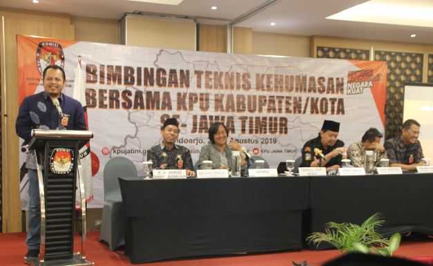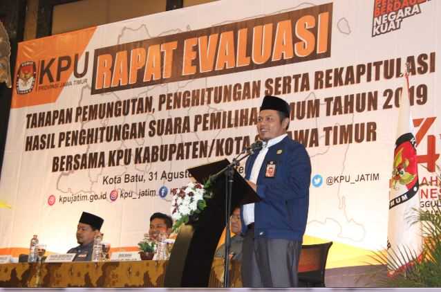 Batu, jatim.kpu.go.id- Mengundang Divisi Teknis Penyelenggaraan dan Kepala Subbagian Teknis dan Hupmas dari 38 Kabupaten/ Kota di Jawa Timur, Komisi Pemilihan Umum Jawa Timur (KPU Jatim) mengajak untuk melakukan evaluasi tahapan pemungutan, penghitungan dan rekapitulasi suara pada pemilu tahun 2019. Rapat evaluasi dilaksanakan selama dua hari (Sabtu-Minggu), tanggal 31 Agustus sampai 1 September 2019 di Singhasari Resort Kota Batu. Pada sambutannya Ketua KPU Jatim, Choirul Anam menuturkan bahwa ada banyak hal yang perlu dievaluasi dalam tahapan pemungutan, penghitungan dan rekapitulasi suara pemilu kemarin. “Yang tidak mungkin dilakukan sendiri oleh KPU Jatim, sehingga Kami mengundang Kawan-kawan Kabupaten/ Kota. Silahkan nanti menyampaikan ke KPU Provinsi hasil evaluasi di Kabupaten/ Kota masing-masing. Hasil kegiatan hari ini sampai dengan besok selanjutnya akan dibawa ke tingkat nasional,” jelasnya (31/8/2019). Menambahkan Anam, Divisi Teknis Penyelenggaraan KPU Jatim, Insan Qoriawan menyampaikan jika hasil evaluasi akan ditungkan dalam bentuk DIM (Daftar Inventaris Masalah). “Namun pembahasan evaluasi nanti akan mulai dari tahapan awal teknis penyelenggaraan pemilu, mulai dari tahapan pembentukan dapil dan penentuan alokasi kursi, pencalonan, pemungutan dan penghitungan suara, rekapitulasi suara, sampai pada penetapan calon terpilih dan jumlah kursi partai politik,” imbuhnya. Usai pembukaan dan pengarahan umum selesai, pada malam hari dan esok hari acara dilanjutkan dengn pembahasan evaluasi tahapan teknis pemilu 2019. Hasil evaluasi ini selanjutkan akan dibawa pada rapat teknis nasional minggu depan. (AACS)