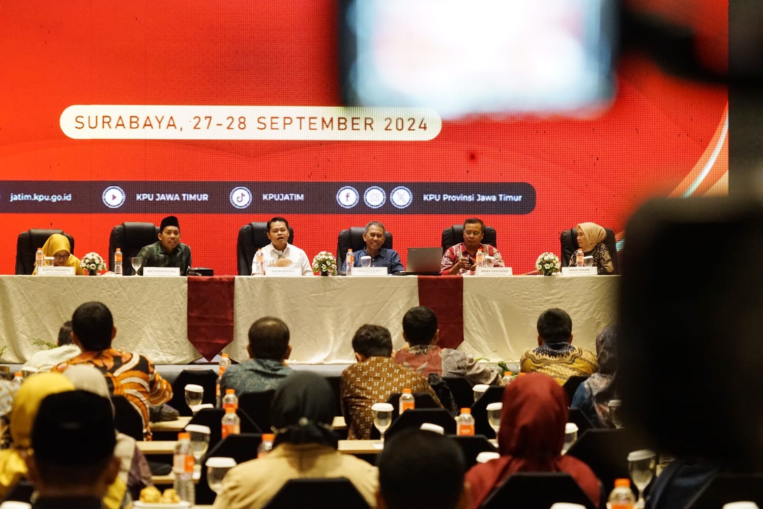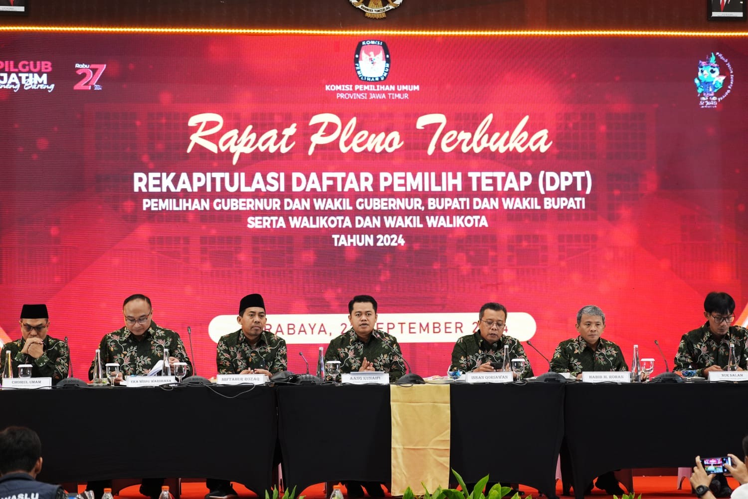 Surabaya, jatim.kpu.go.id - Komisi Pemilihan Umum Provinsi Jawa Timur (KPU Jatim) menggelar Focus Group Discussion (FGD) terkait Penyusunan Evaluasi Pemilu Tahun 2024 dengan peserta yang berasal dari KPU provinsi dan KPU kabupaten/ kota se-Jawa Timur. FGD dilangsungkan di HARRIS Hotel & Conventions Gubeng, Jalan Bangka Nomor 8-18, Gubeng, Surabaya, pada 27-28 November 2024. Ketua KPU Jatim Aang Kunaifi menjelaskan, kegiatan yang digelar dimaksudkan untuk mengevaluasi pelaksanaan Pemilu 2024 agar jajaran KPU kabupaten/ kota dapat memaksimalkan peran dalam melaksanakan amanat sebagai ketua maupun anggota. Aang mengingatkan, kegiatan yang digelar tidak hanya untuk kepentingan internal, tetapi juga untuk perbaikan Pemilu di masa yang akan datang. "Diharapkan evaluasi ini tidak hanya untuk kepentingan internal, tetapi juga berkontribusi pada perbaikan sistem pemilu di masa depan," kata Aang. Aang juga menyoroti sejumlah kasus yang terjadi di daerah di luar Jatim, akibat kurangnya komunikasi dan koordinasi antar divisi. Ia menekankan, kekompakan dan kerja sama tim sangat penting dalam setiap kegiatan yang melibatkan KPU di tingkat kabupaten/ kota. "Setiap anggota KPU diharapkan bisa bekerja secara kolektif dan berkoordinasi dalam setiap kegiatan," ujarnya. Anggota KPU Jatim Divisi Logistik dan Perencanaan, Miftahur Rozaq menekankan pentingnya FGD tersebut sebagai bagian dari persiapan akhir Pemilu 2024. Ia mengatakan, kegiatan yang diselenggarakan merupakan langkah penting dalam menyelesaikan tahapan Pemilu sesuai dengan petunjuk teknis dari Kemendagri. "Kami berharap laporan-laporan ini dapat diselesaikan sebelum tanggal 30 September 2024, sebelum pelantikan presiden terpilih pada 20 Oktober 2024," ucapnya. Anggota KPU Jatim Divisi Data dan Informasi, Insan Qoriawan menambahkan, tidak semua orang mendapatkan kesempatan untuk berpartisipasi dalam diskusi penting ini. Ia menjelaskan, meskipun tahapan Pemilu 2024 belum sepenuhnya selesai, termasuk pelantikan calon anggota DPR RI dan pasangan presiden terpilih, KPU telah memulai penyusunan laporan evaluasi untuk memperbaiki penyelenggaraan Pemilu. "Harapannya, evaluasi ini bisa memberikan manfaat, terutama untuk laporan yang akan disampaikan kepada Presiden," ucapnya. Sekretaris KPU Jatim, Nanik Karsini juga menekankan pentingnya komitmen para ketua dan sekretaris KPU dalam menyelesaikan laporan Sistem Pertanggungjawaban. Ia berharap peserta FGD dapat aktif berdiskusi dan menyampaikan pandangan serta pengalaman mereka mengenai pelaksanaan Pemilu 2024. "Penyelenggaraan Pemilu harus sukses tidak hanya dari sisi pelaksanaan tetapi juga dalam hal pertanggungjawaban anggaran," kata Nanik. (FIT)