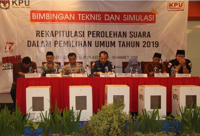 Surabaya, jatim.kpu.go.id- Komisi Pemilihan Umum Jawa Timur (KPU Jatim) mengadakan rapat koordinasi (rakor) pemungutan dan penghitungan suara (tungsura) bersama dengan KPU Kabupaten/ Kota hari ini (Kamis, 14/3). Rakor membahas Daftar Inventaris Masalah (DIM) dalam tahapan tungsura yang mungkin akan terjadi pada pemilu 2019 nanti (17 April 2019-red). Nampak hadir dalam rakor ini yakni, Divisi Teknis Penyelenggaraan KPU Jatim, Insan Qoriawan serta Divisi SDM dan Litbang KPU Jatim, Rochani. Sedangkan peserta adalah Divisi Teknis Penyelenggaraan dari 38 KPU Kabupaten/ Kota di Jawa Timur. Membuka rakor, Komisioner KPU Jatim, Rochani mengungkapkan kegiatan kali ini adalah bentuk kegelisahan penyelenggara jelang 33 hari pemilu 2019. “Untuk itu dalam pertemuan ini, harus mampu menggali kebutuhan persoalan di lapangan saat tahapan tungsura. Selain itu, sekaligus juga membahas solusinya,” tutur Rochani (14/3/2019). Berikutnya, Divisi Teknis Penyelenggaraan KPU Jatim, Insan Qoriawan kembali menegaskan jika saat ini moment-moment dimana hari pemungutan dan penghitungan suara sudah semakin dekat. “Di tengah kesibukan tahapan, Kita harus bisa membagi waktu dengan baik. Termasuk mengikuti rakor ini di tengah kesibukan yang ada. Serta silahkan membuat jadwal untuk setiap tahapan tungsura, dan berkoordinasi dengan Divisi Logistik juga,” jelas Insan dalam arahannya. Usai pengarahan umum, peserta pun membahas Bersama DIM tahapan tungsura dalam pemilu tahun 2019. Rakor bertempat di aula lantai II kantor KPU Jatim. Berlangsung selama dua hari, Kamis sampai dengan Jum’at, tanggal 14 – 15 Maret 2019. (AACS)